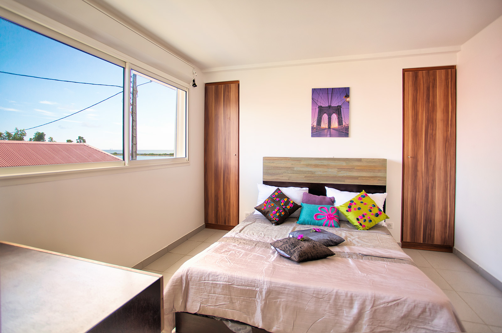 Orientation plein sud avec une belle ouverture pour profiter des alizés. L’appartement et ensoleillé et très bien ventilé.