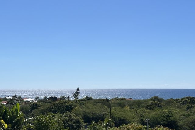 La cuisine est prévue dans le séjour de 39,98m2. Cette pièce très agréable à vivre est ouverte sur une large terrasse orientée plein sud avec vue sur Marie galante, Les îles de Petites Terre et la Désirade.
