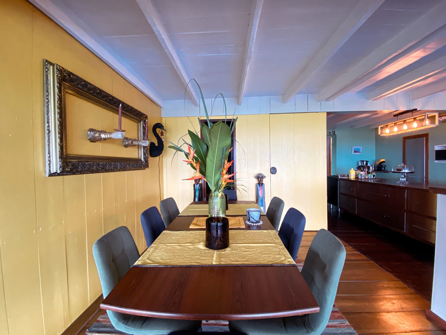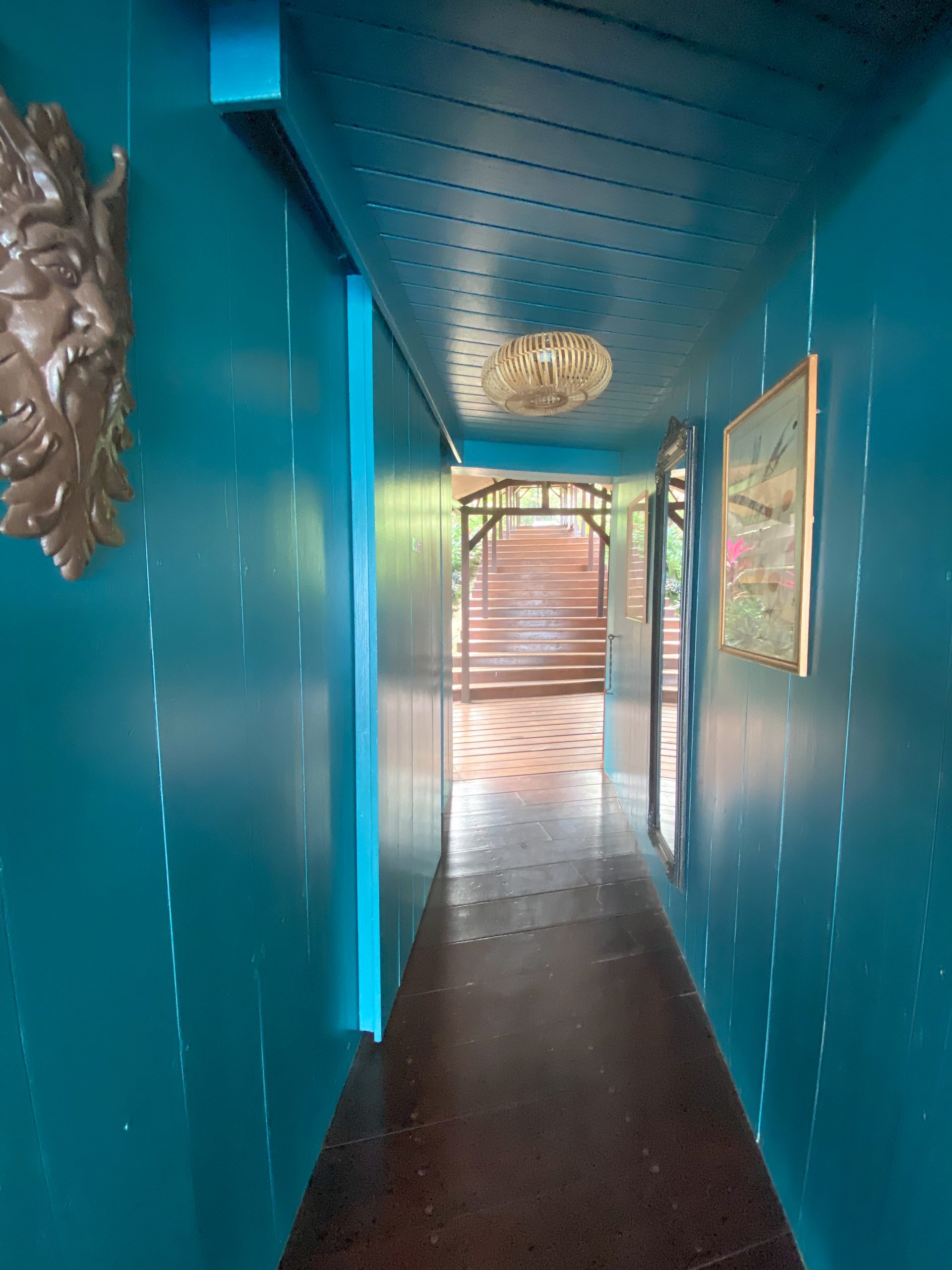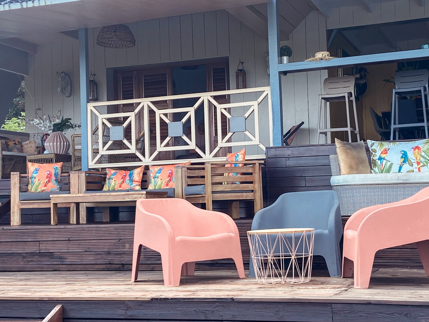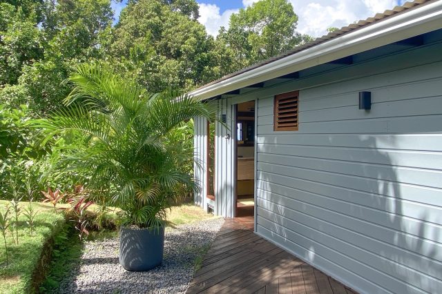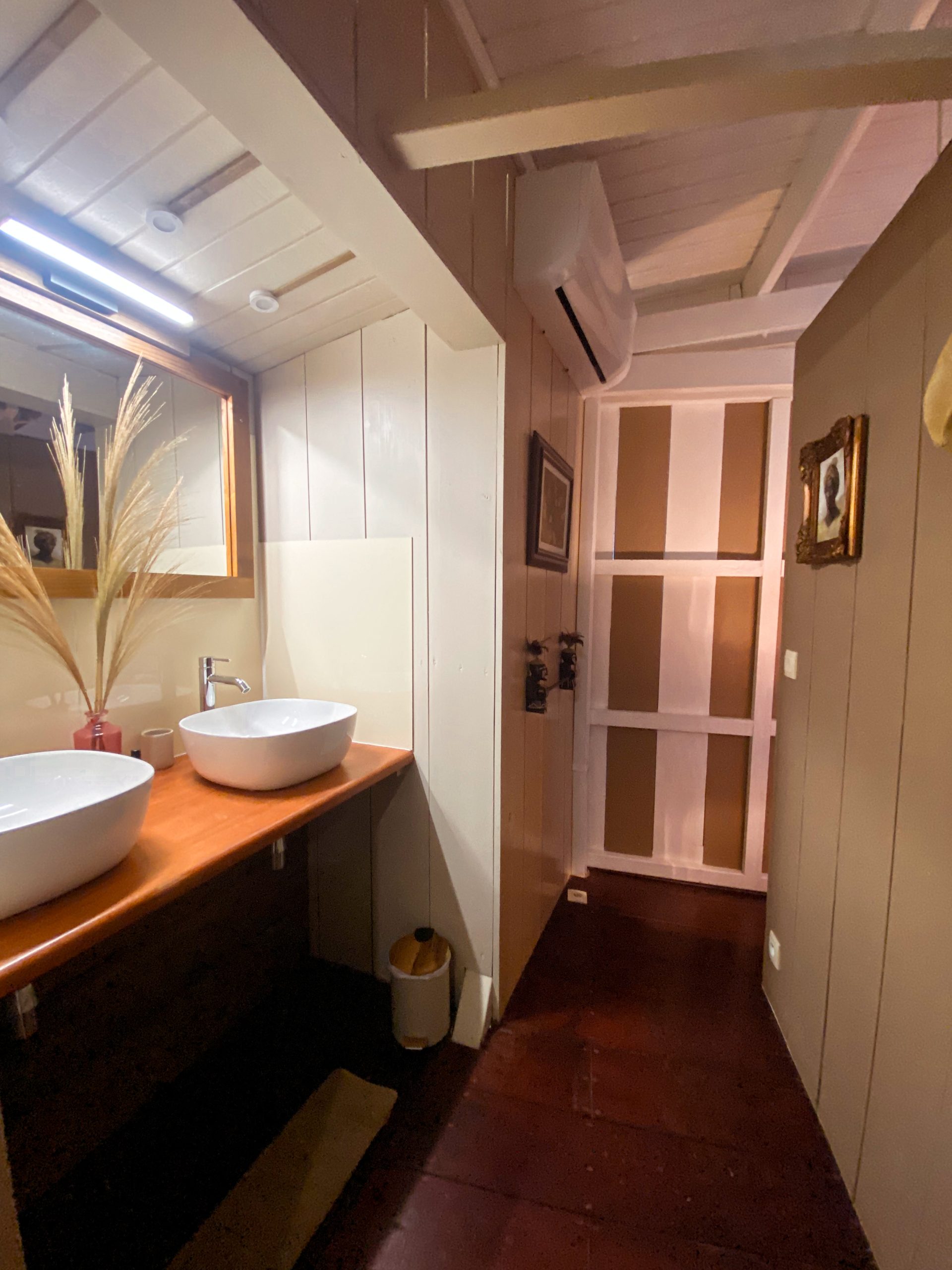 La maison principale dégage un véritable charme créole : couleurs harmonieuses, matériaux naturels, décor raffiné et ambiance chaleureuse.