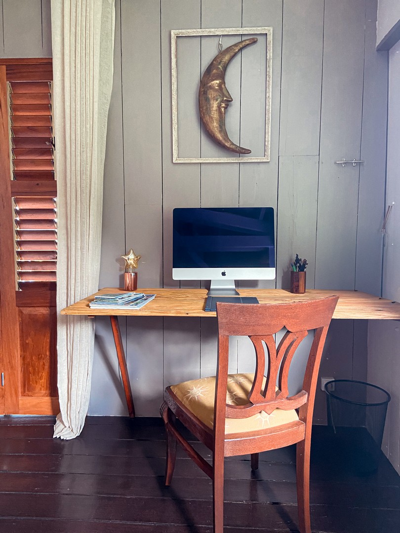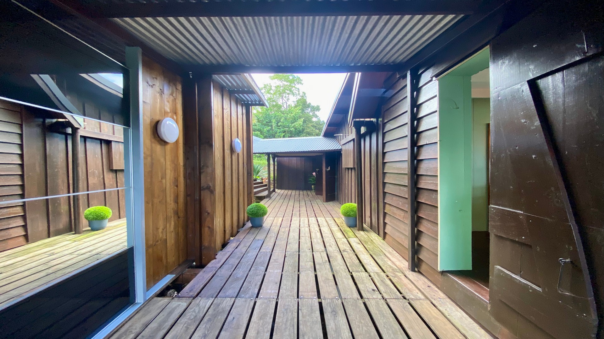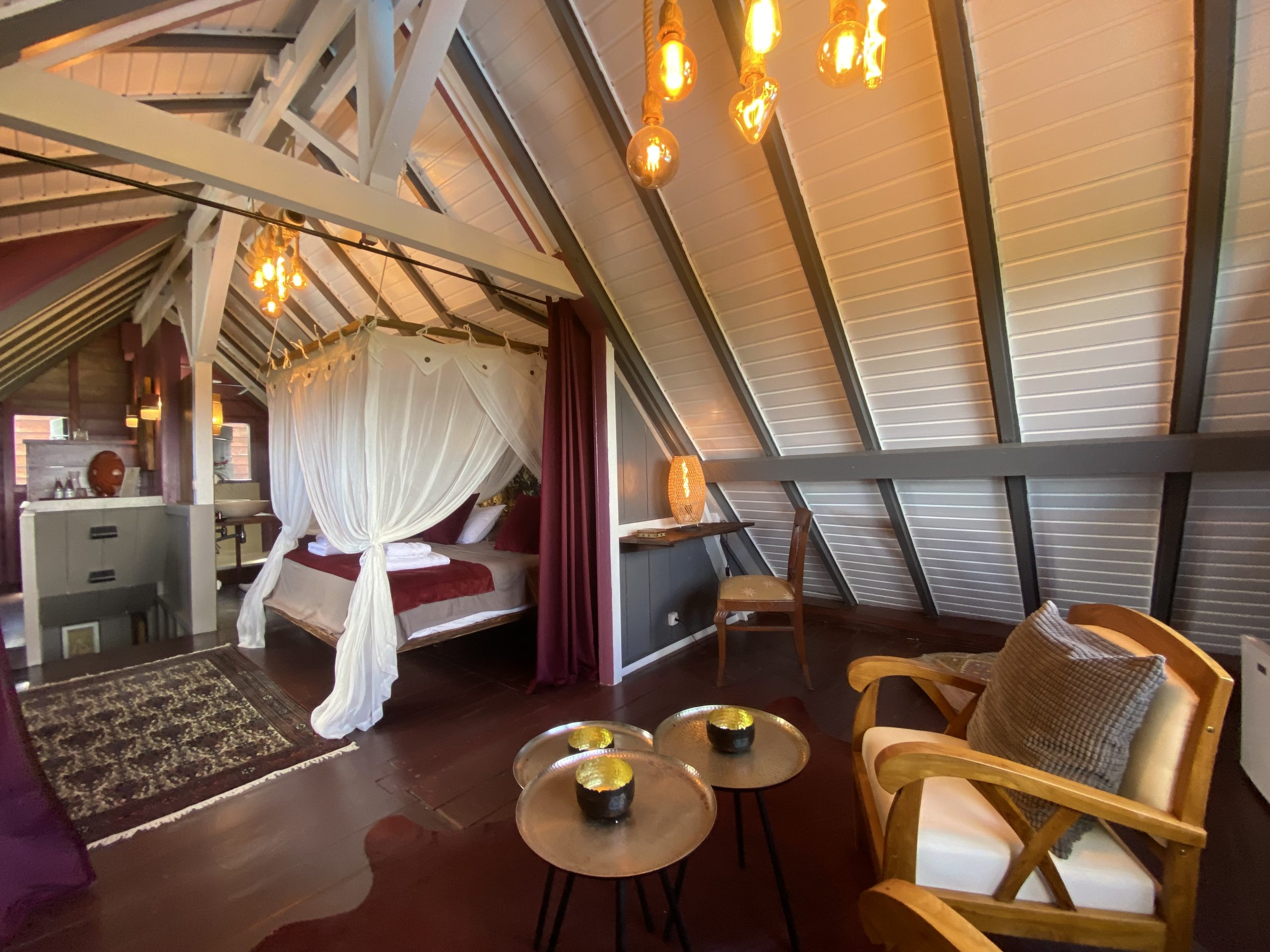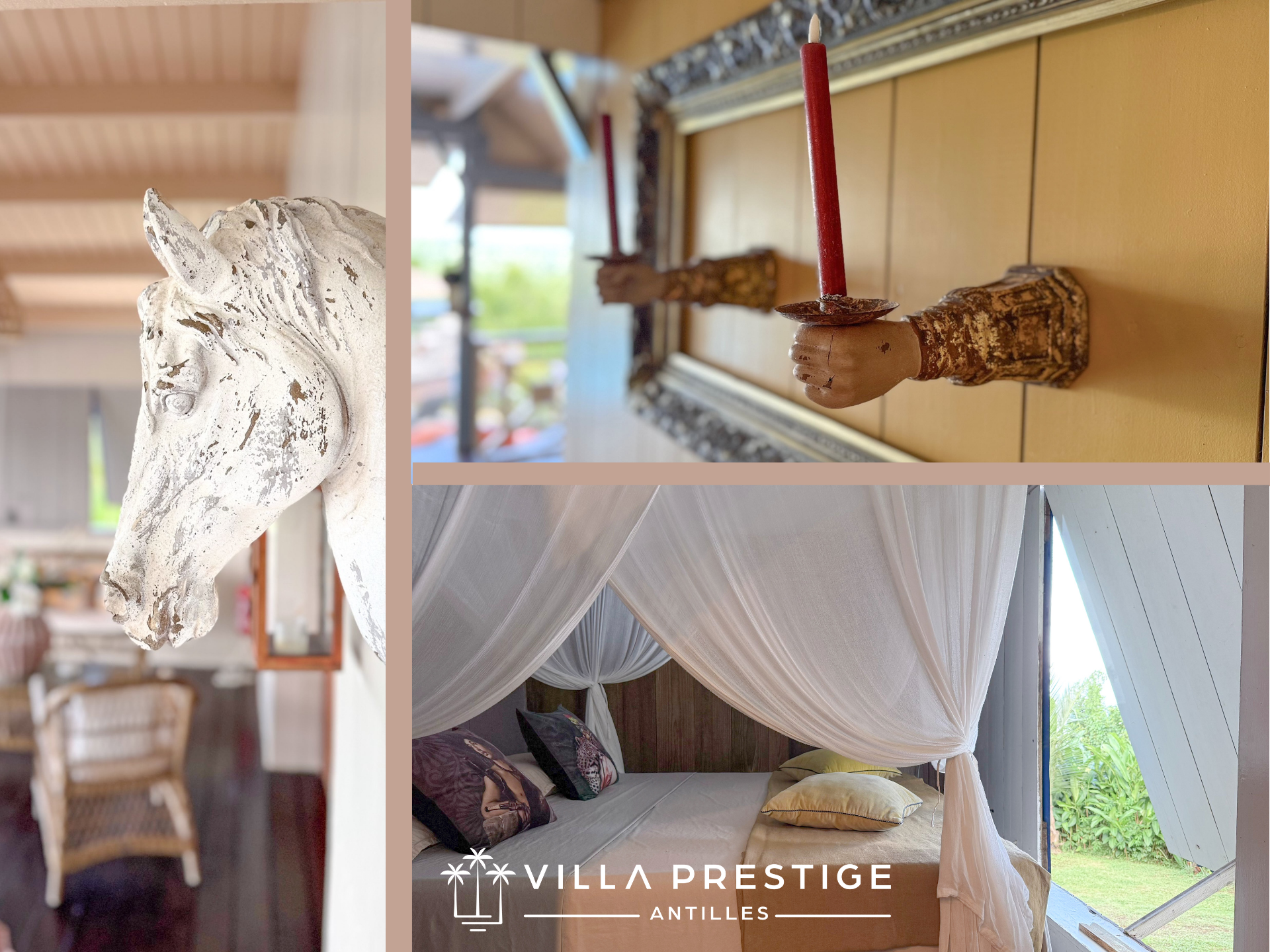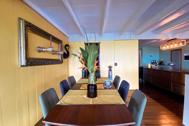 La maison principale dégage un véritable charme créole : couleurs harmonieuses, matériaux naturels, décor raffiné et ambiance chaleureuse.