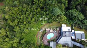 La propriété bénéficie d’un magnifique jardin tropical, d’une piscine intimiste entourée de végétation, et de terrasses offrant des vues époustouflantes.
