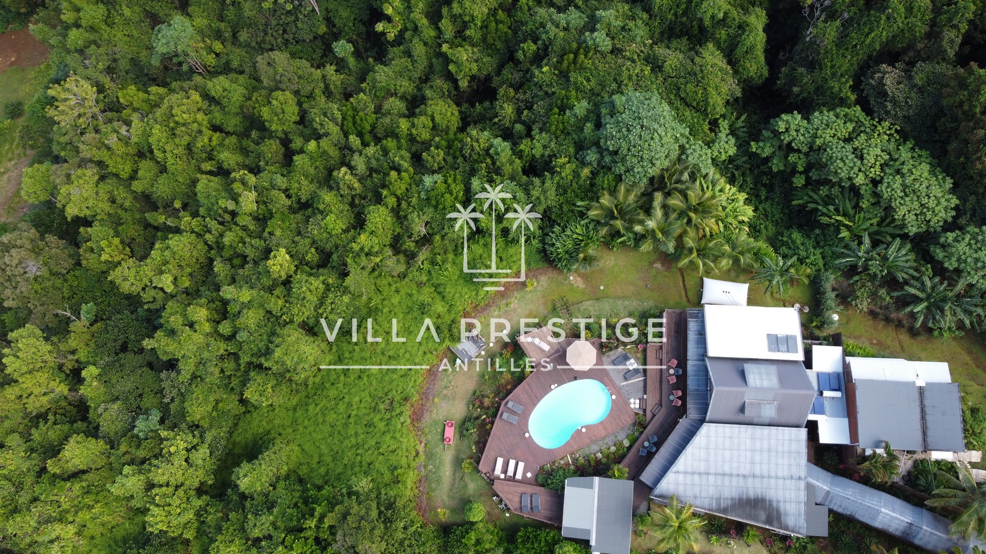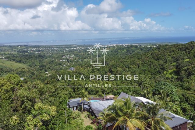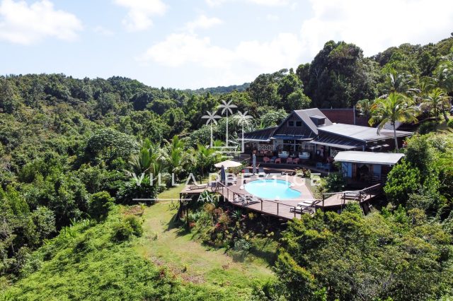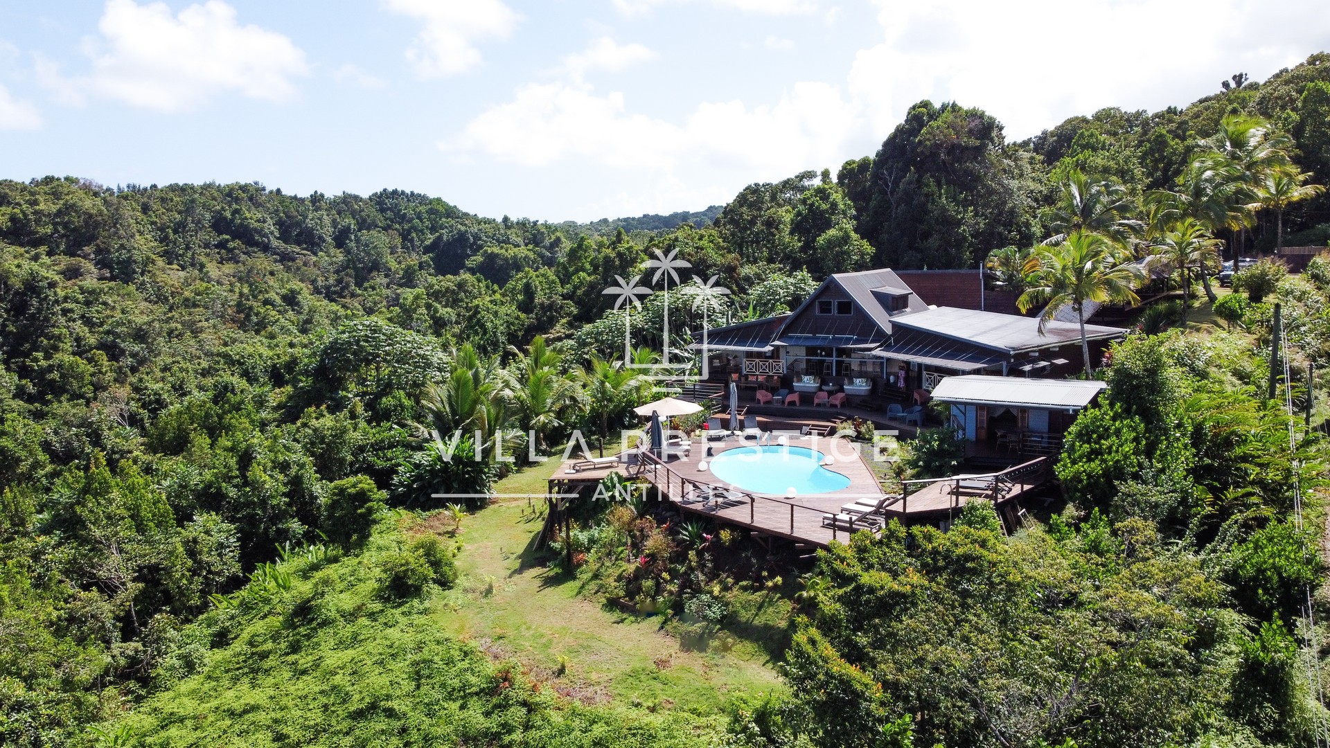 Une propriété rare, située en hauteur, offrant une vue panoramique spectaculaire sur la mer et la nature tropicale environnante.