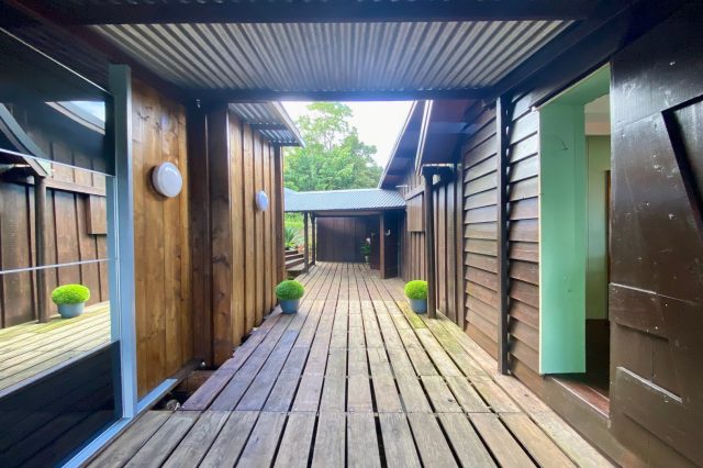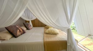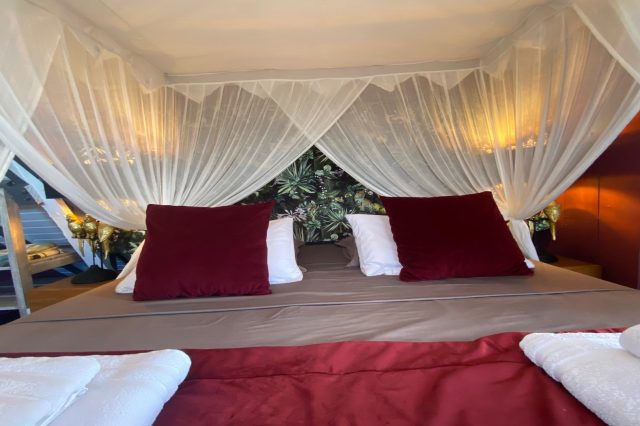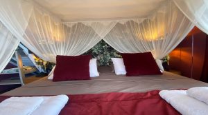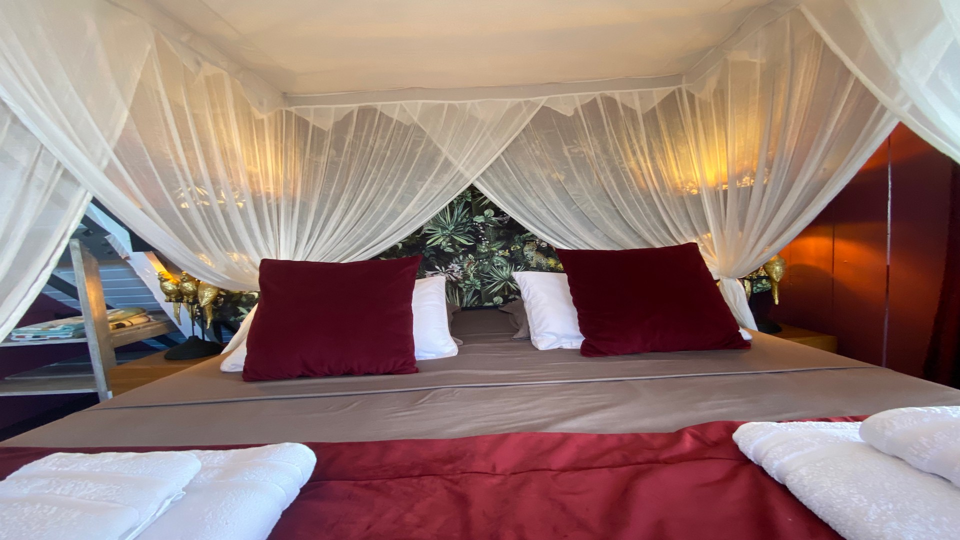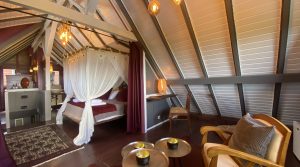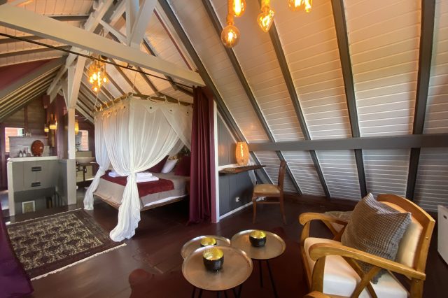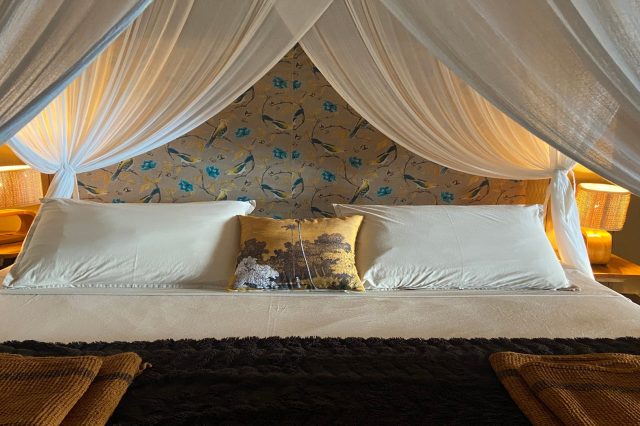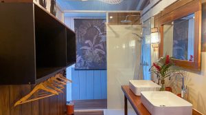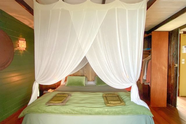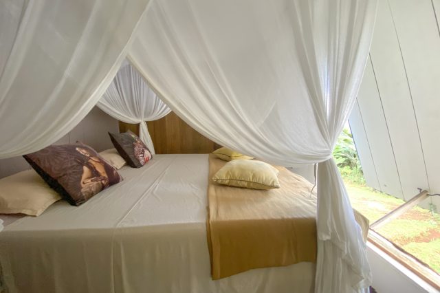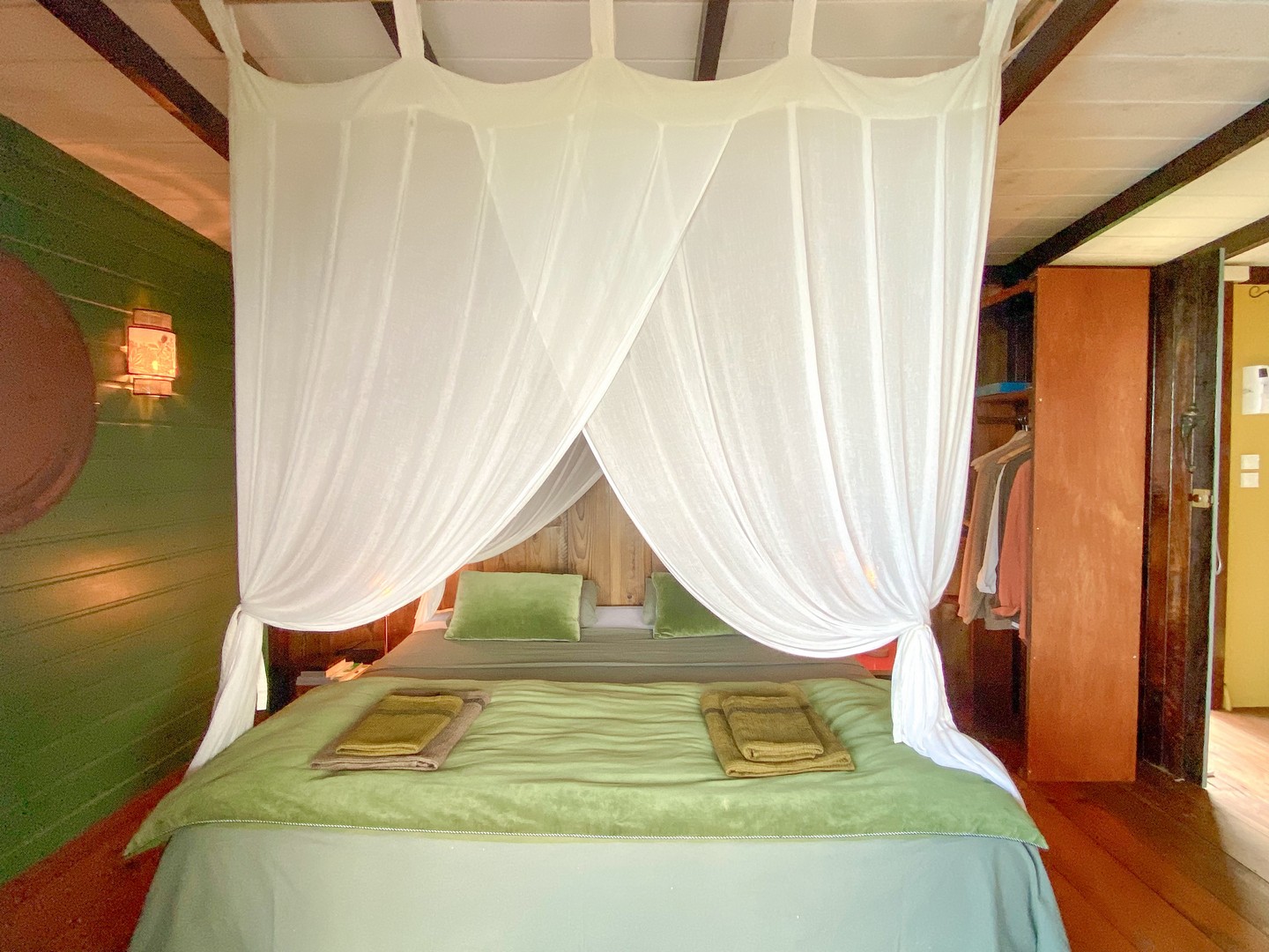 Les pièces de vie sont ouvertes sur les terrasses et la vue exceptionnelle. Les chambres, bien que situées dans le corps principal, sont toutes dotées d’une entrée privative et d’une salle d’eau individuelle, créant une atmosphère de charmantes suites tropicales.