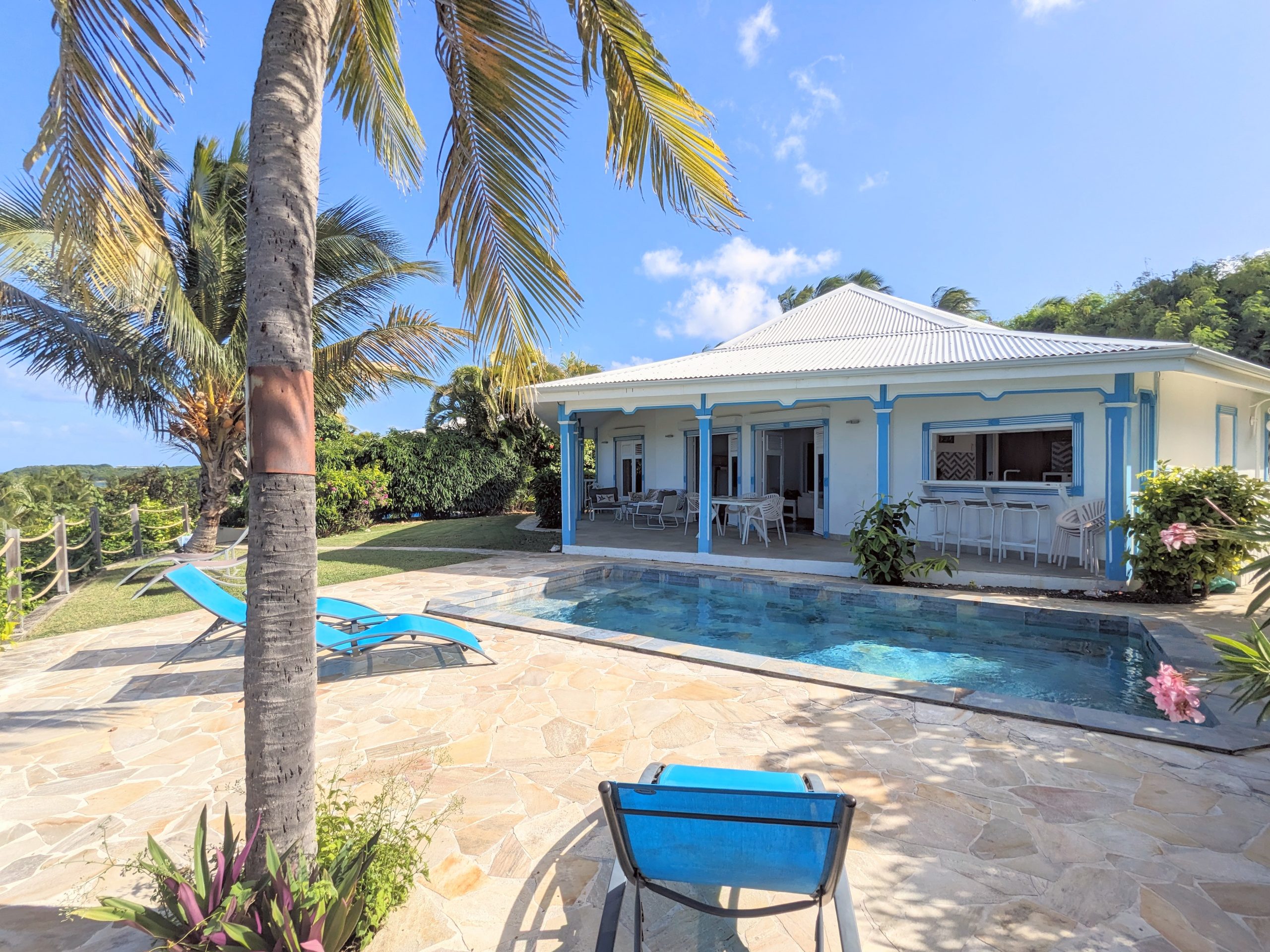 Situées dans une copropriété privée et sécurisée, ces deux villas sont voisines et bénéficient d’un emplacement privilégié avec l’accès à pied à l’une des plus belles plages de Saint-François.
