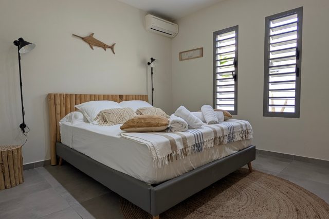 Trois chambres climatisées dans chaque villa, toutes équipées de literie haut de gamme, salle d’eau privative et WC individuel, pour un maximum de confort et d’intimité.