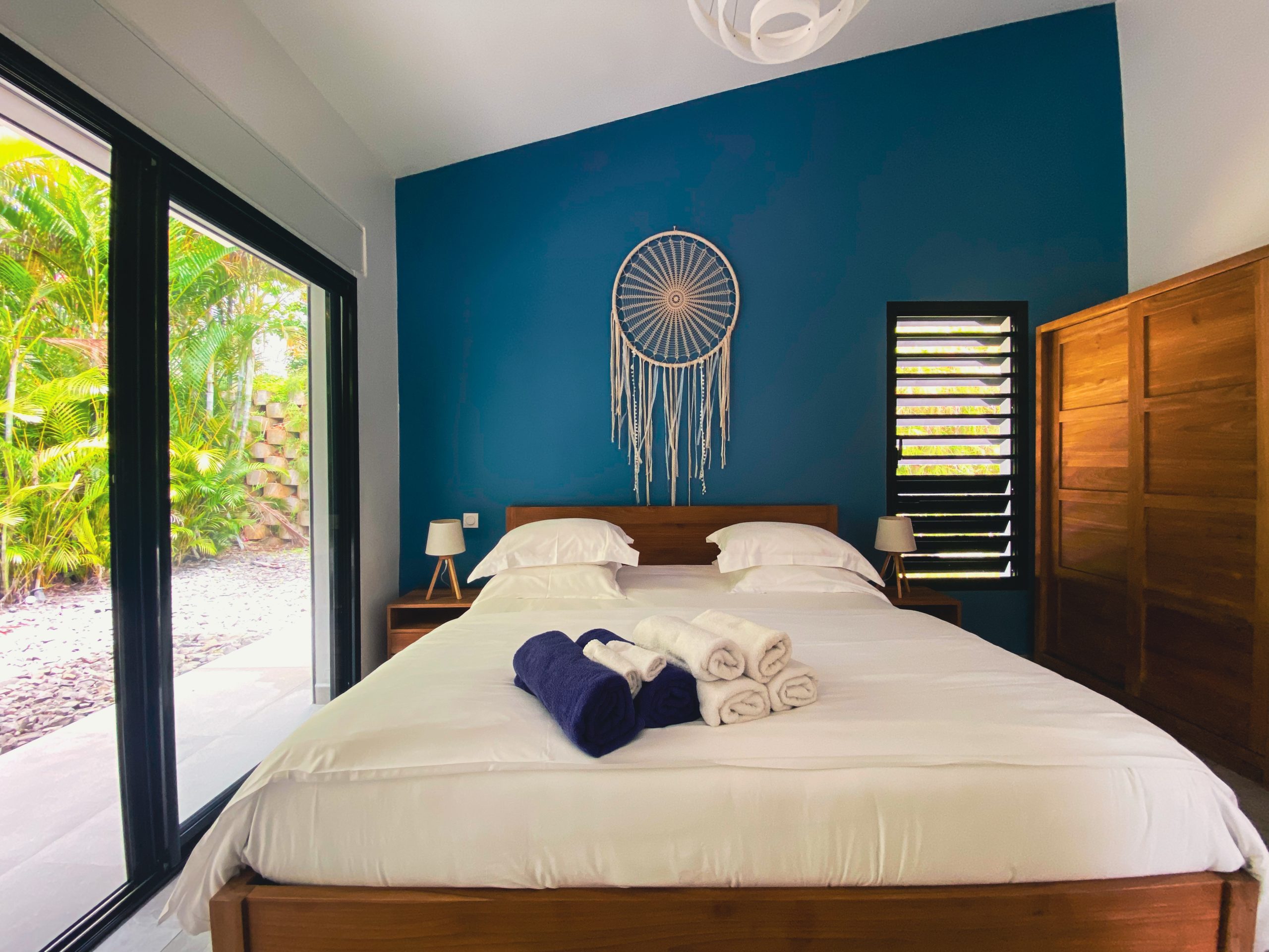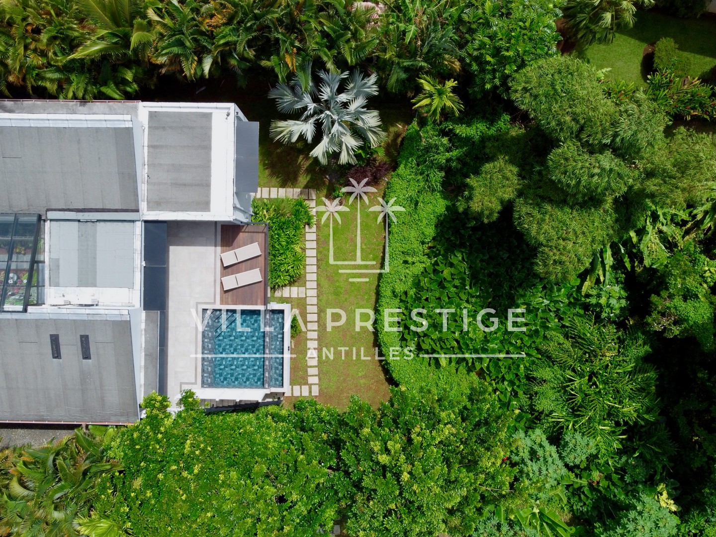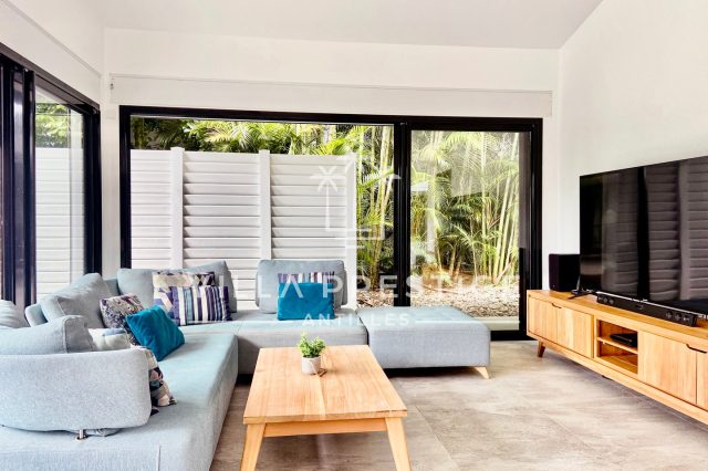 Un cocon confidentiel, baigné de lumière, entouré de verdure tropicale.