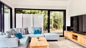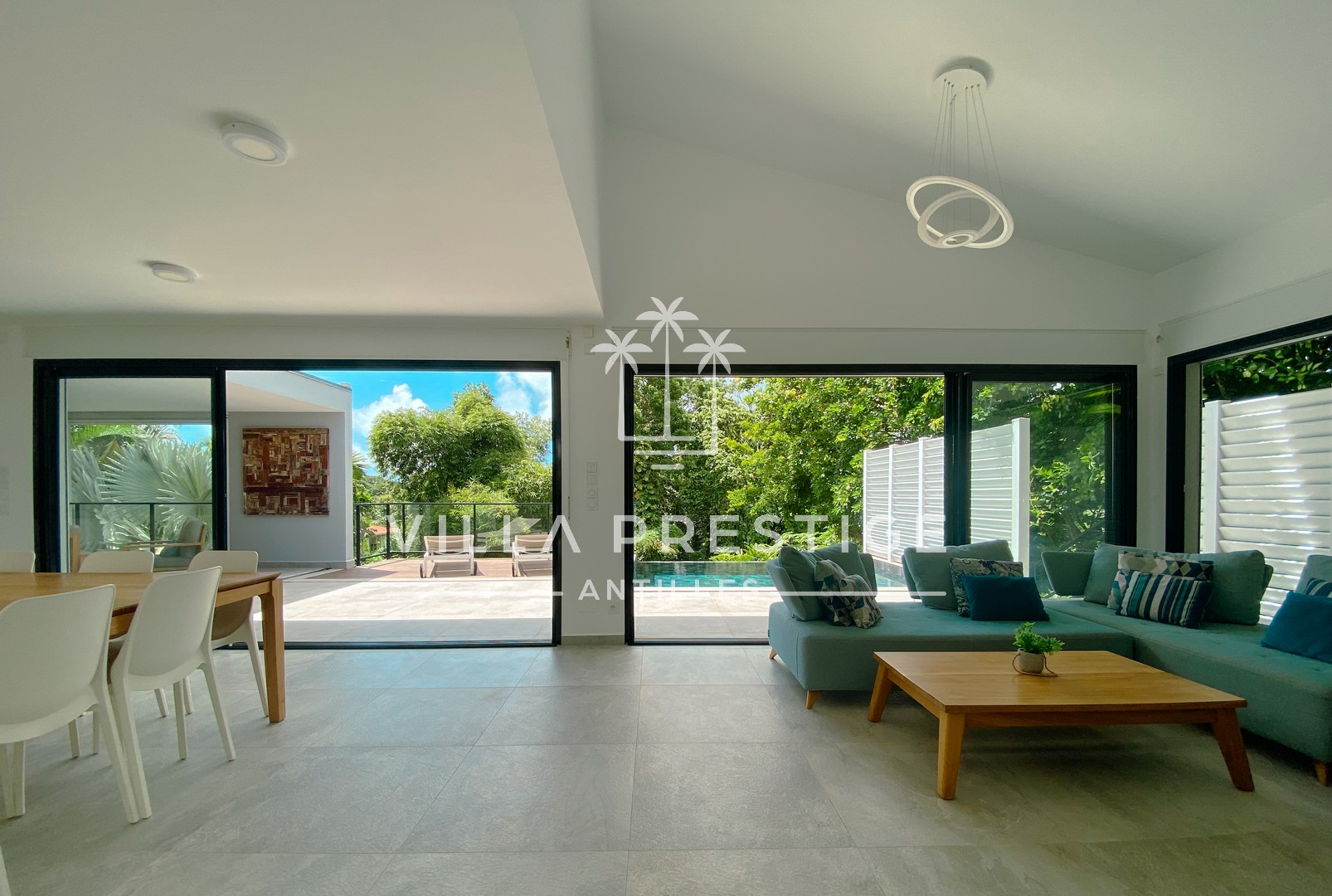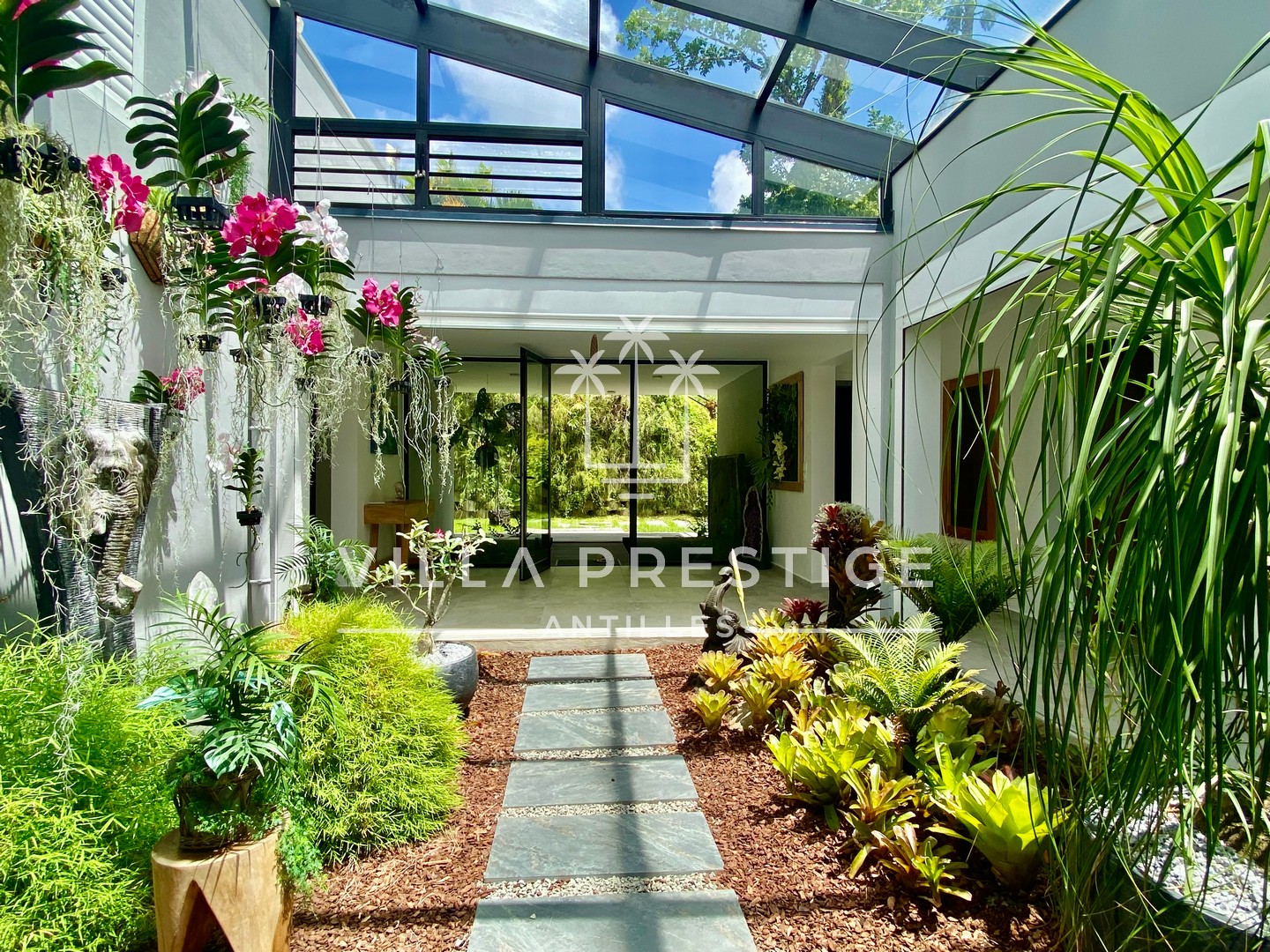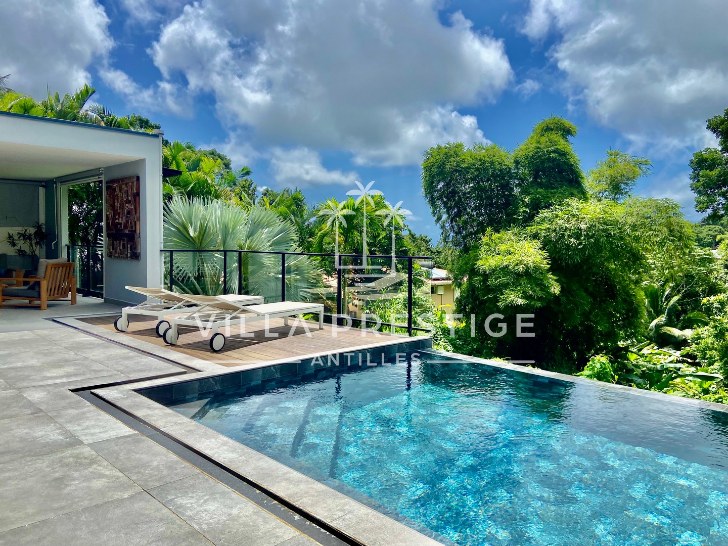 Un cocon confidentiel, baigné de lumière, entouré de verdure tropicale.