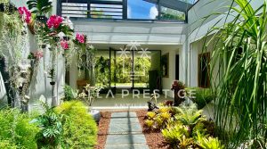 Implantée sur un terrain de 3 385 m², la propriété bénéficie d’un environnement exceptionnel : intimité absolue, végétation luxuriante, atmosphère apaisante.