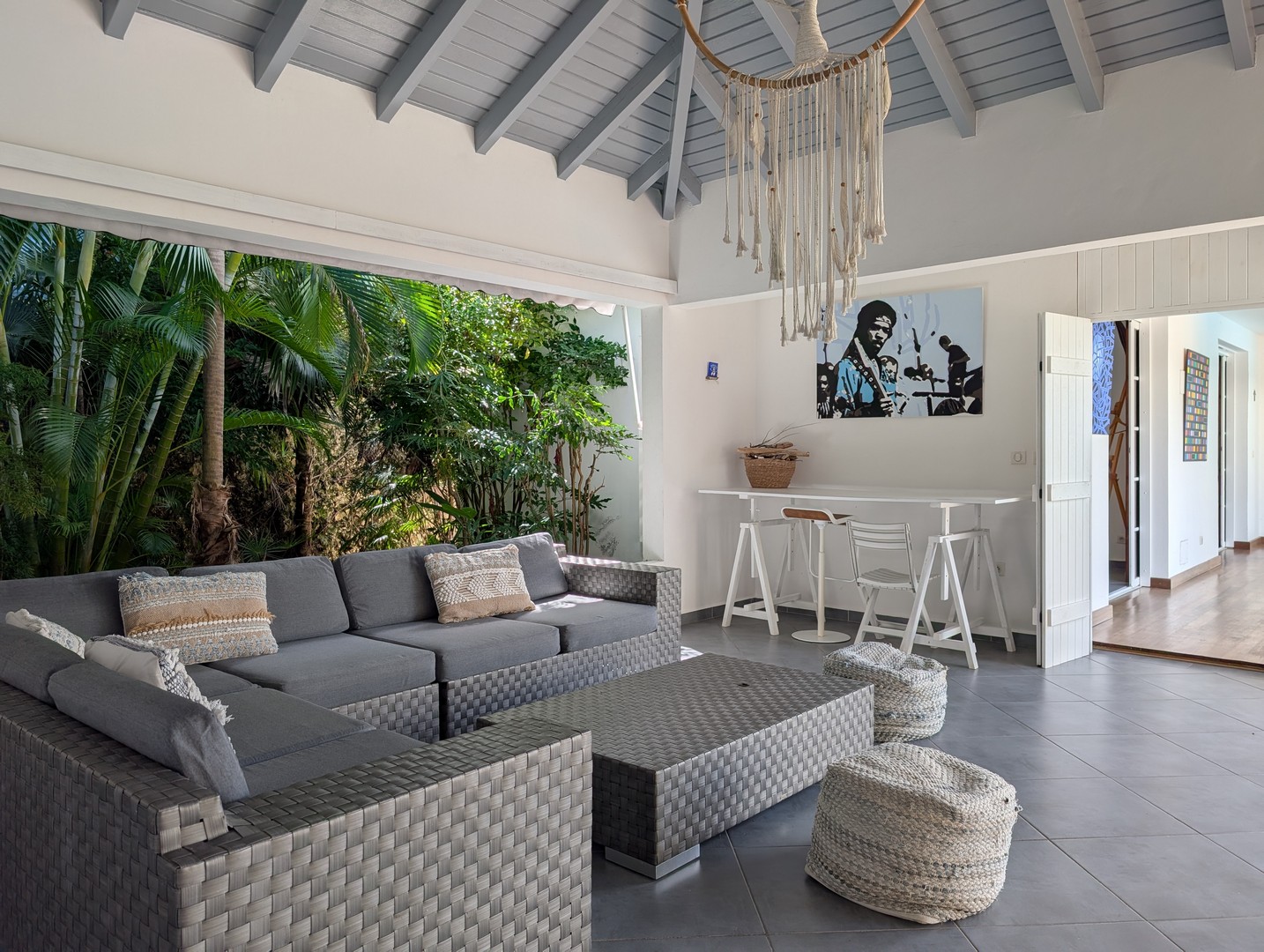 L’autre aile du L accueille une pièce de vie remarquable :