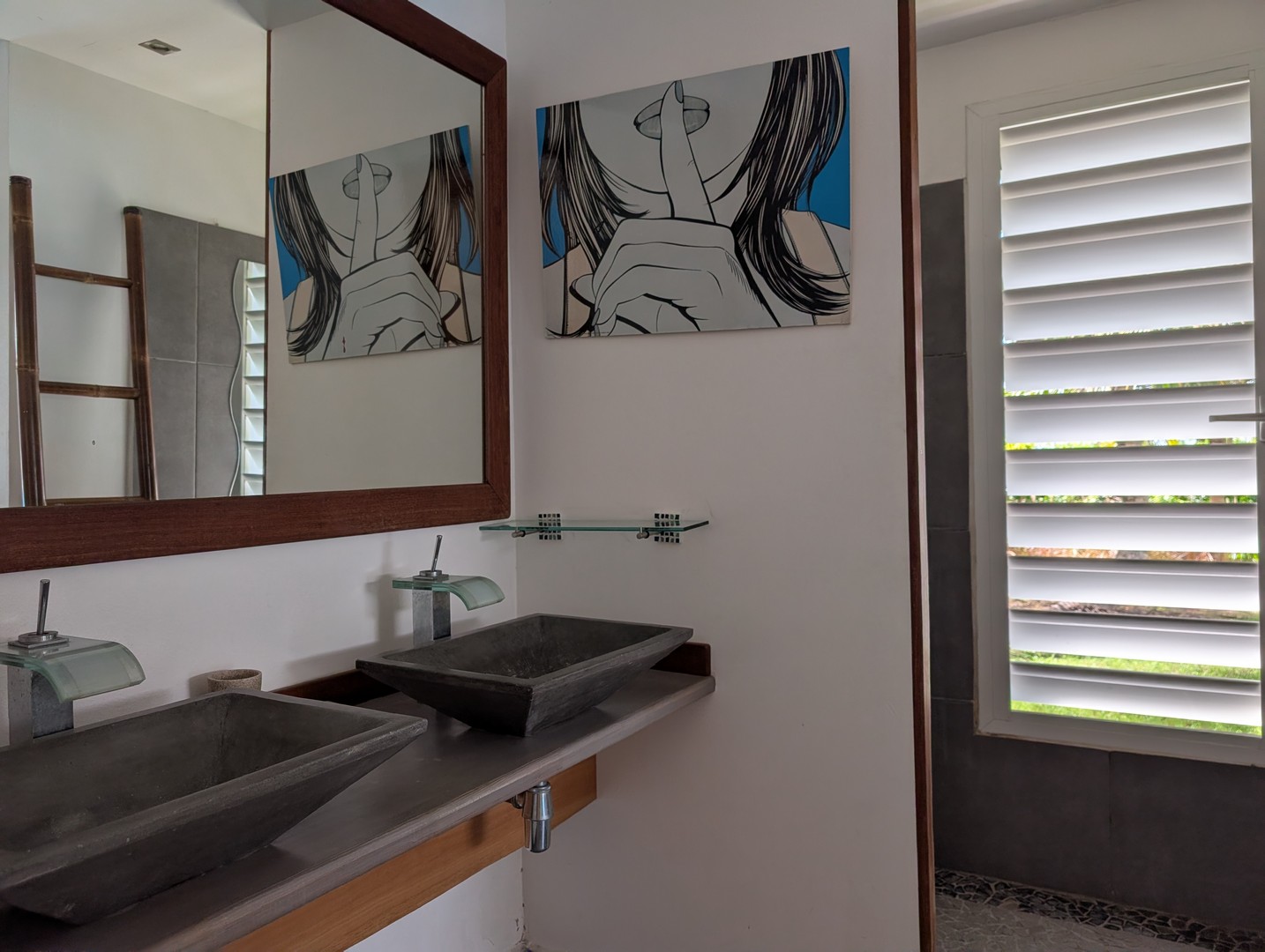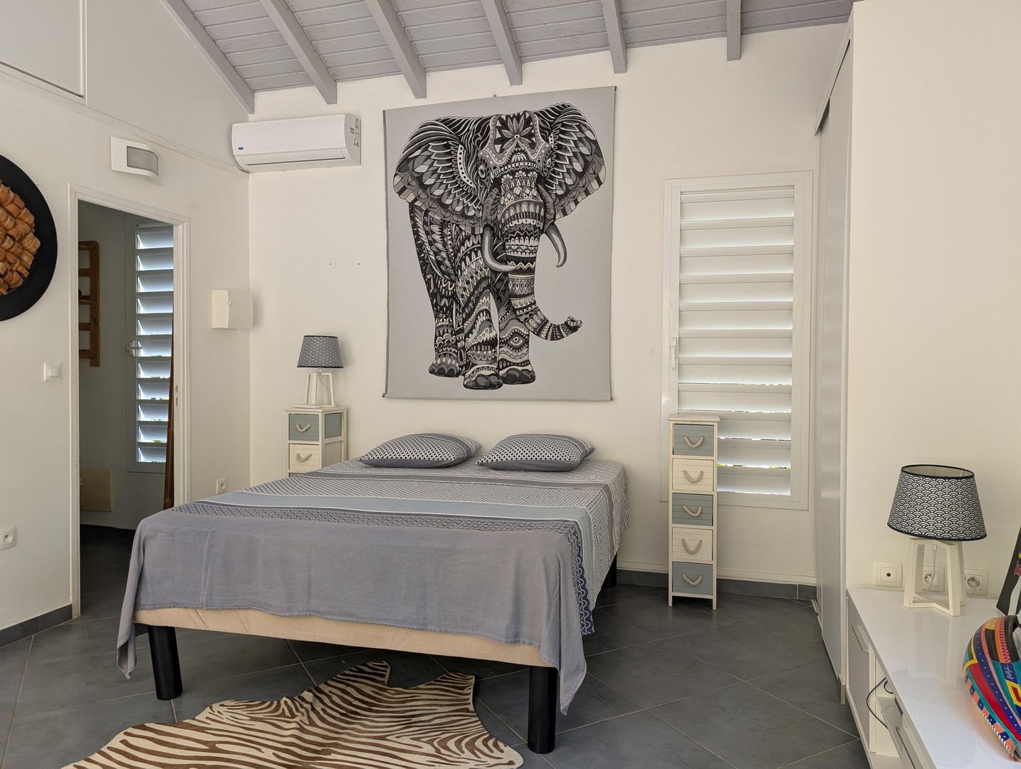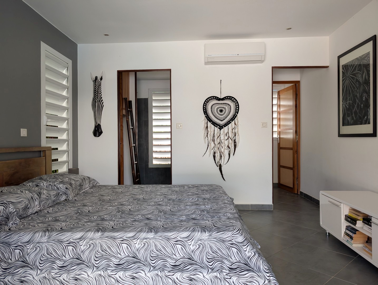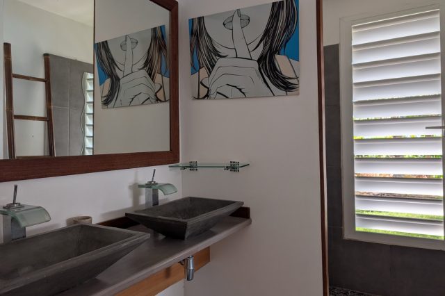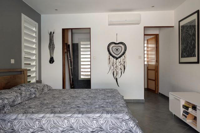3 chambres climatisées, chacune avec placard intégré, salle d’eau et WC privatifs,