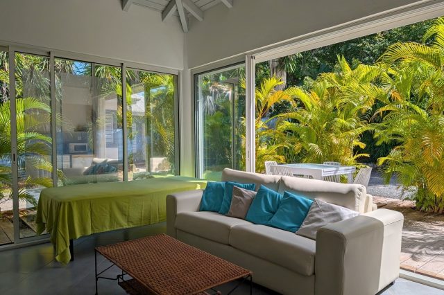 Accessible via un dégagement depuis la maison principale, un studio complet comprend :