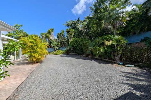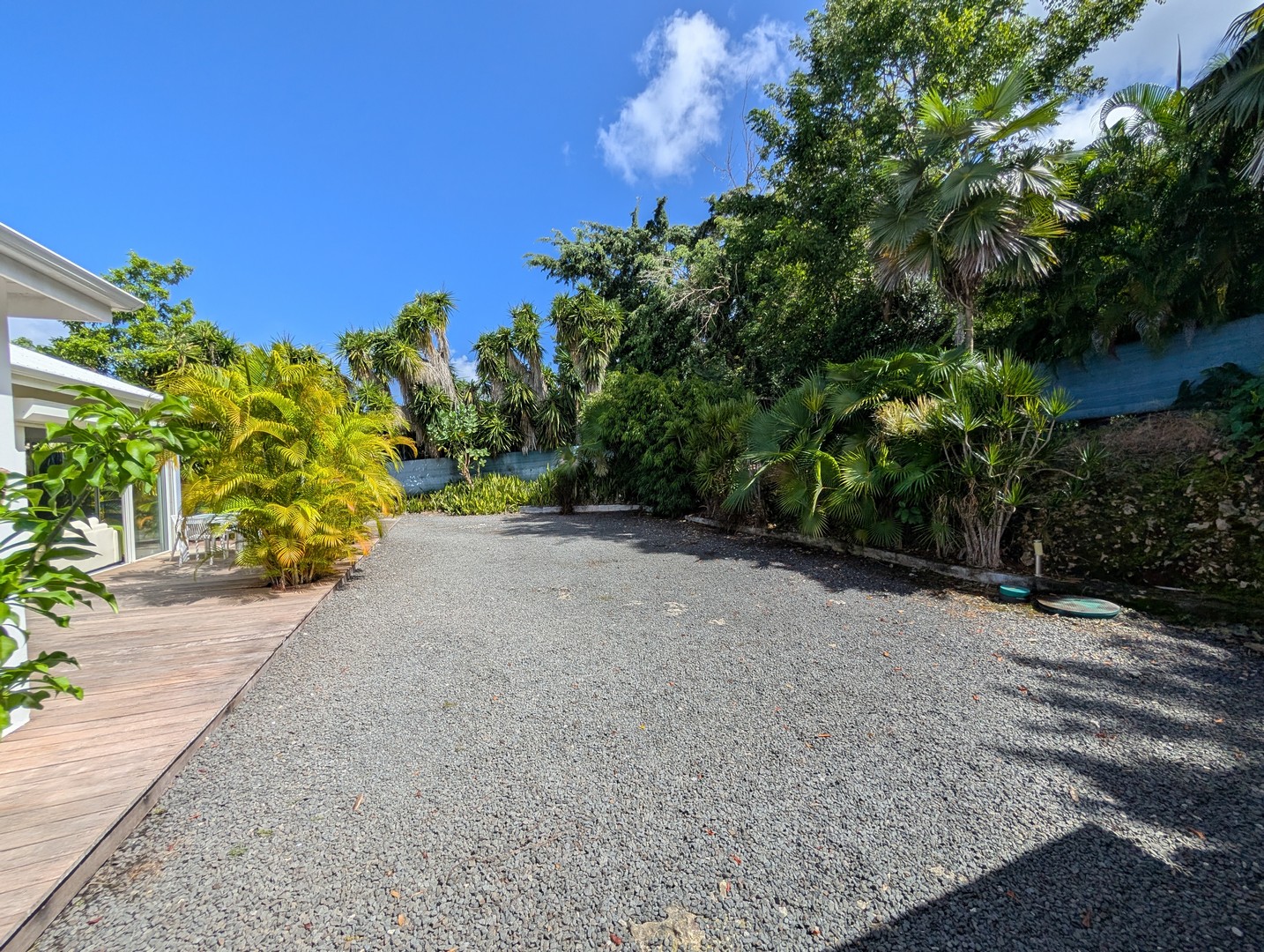 Grand parking gravillonné,