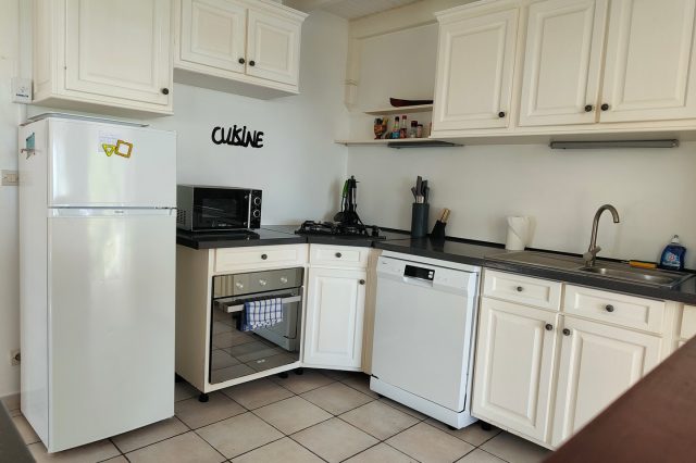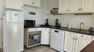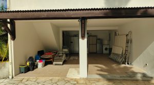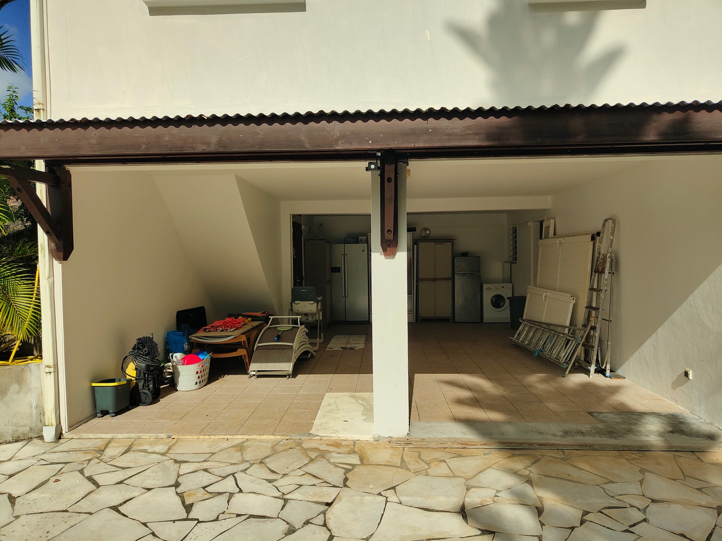 Au rez de jardin, un grand parking fermé, un garage, un appartement de type t3 composée de deux chambres, une salle de douche avec wc, une terrasse avec kitchenette.