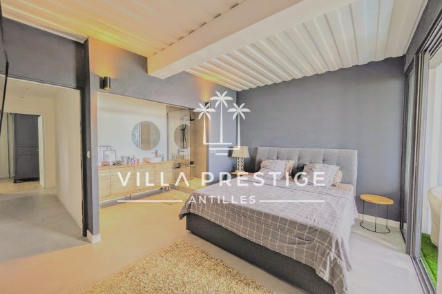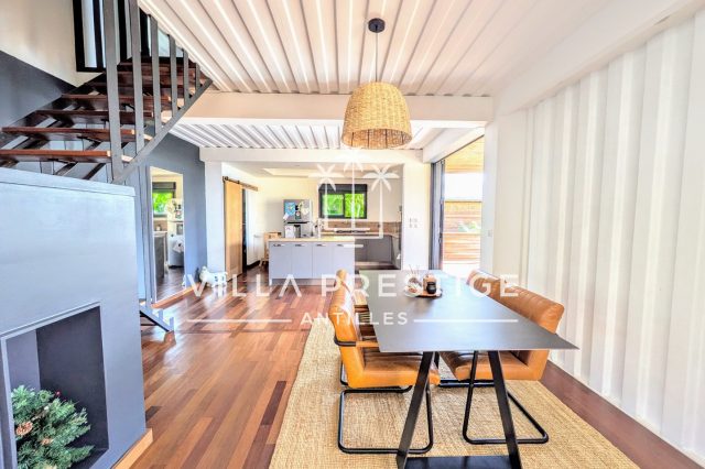Située à Saint-François, dans un secteur particulièrement demandé, cette maison contemporaine de 153 m², construite en 2019, séduit par son architecture moderne, ses prestations de qualité et son cadre de vie privilégié avec vue mer.