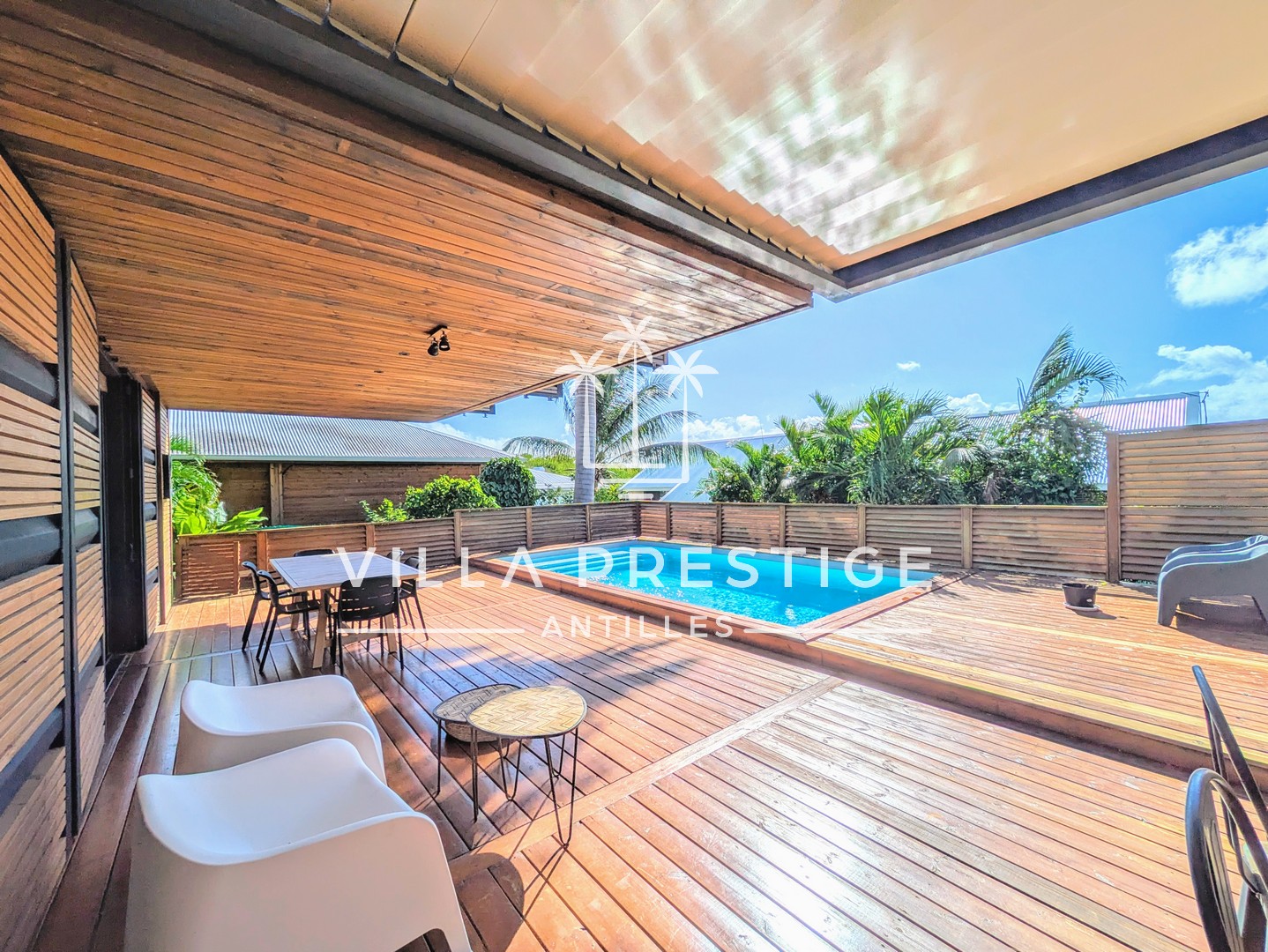 - Piscine, terrasse couverte et deck en bois