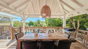 - Une belle terrasse couverte en deck accueillant deux carbets : un salon extérieur et une salle à manger, offrant un véritable espace de vie supplémentaire ouvert sur la nature