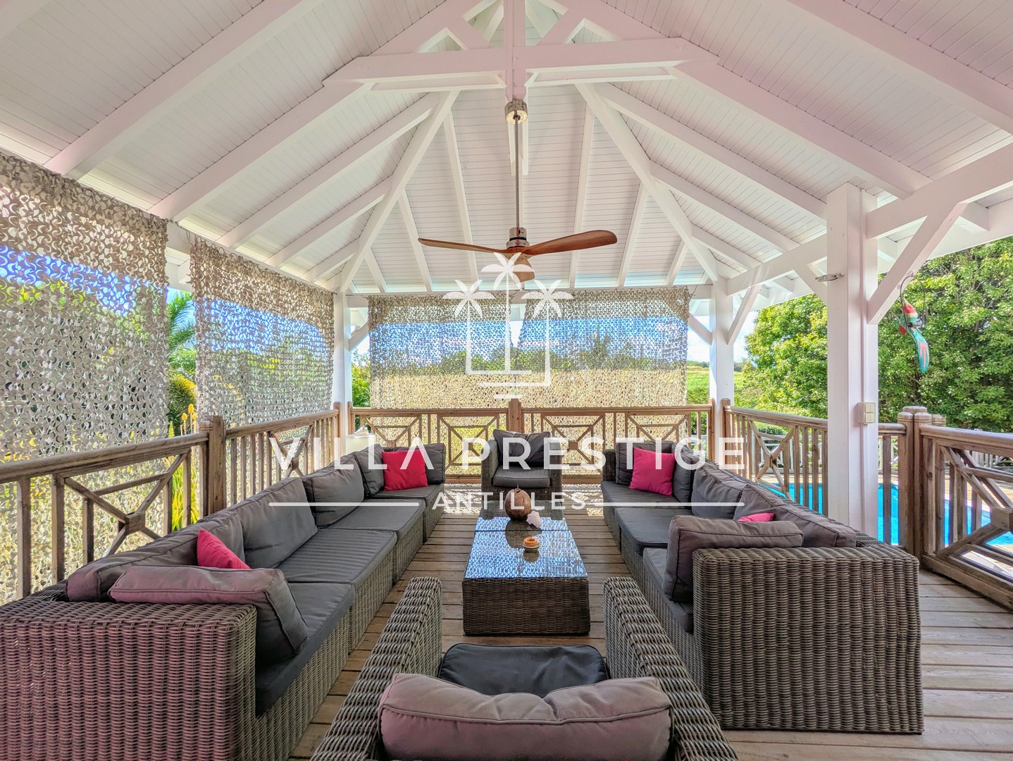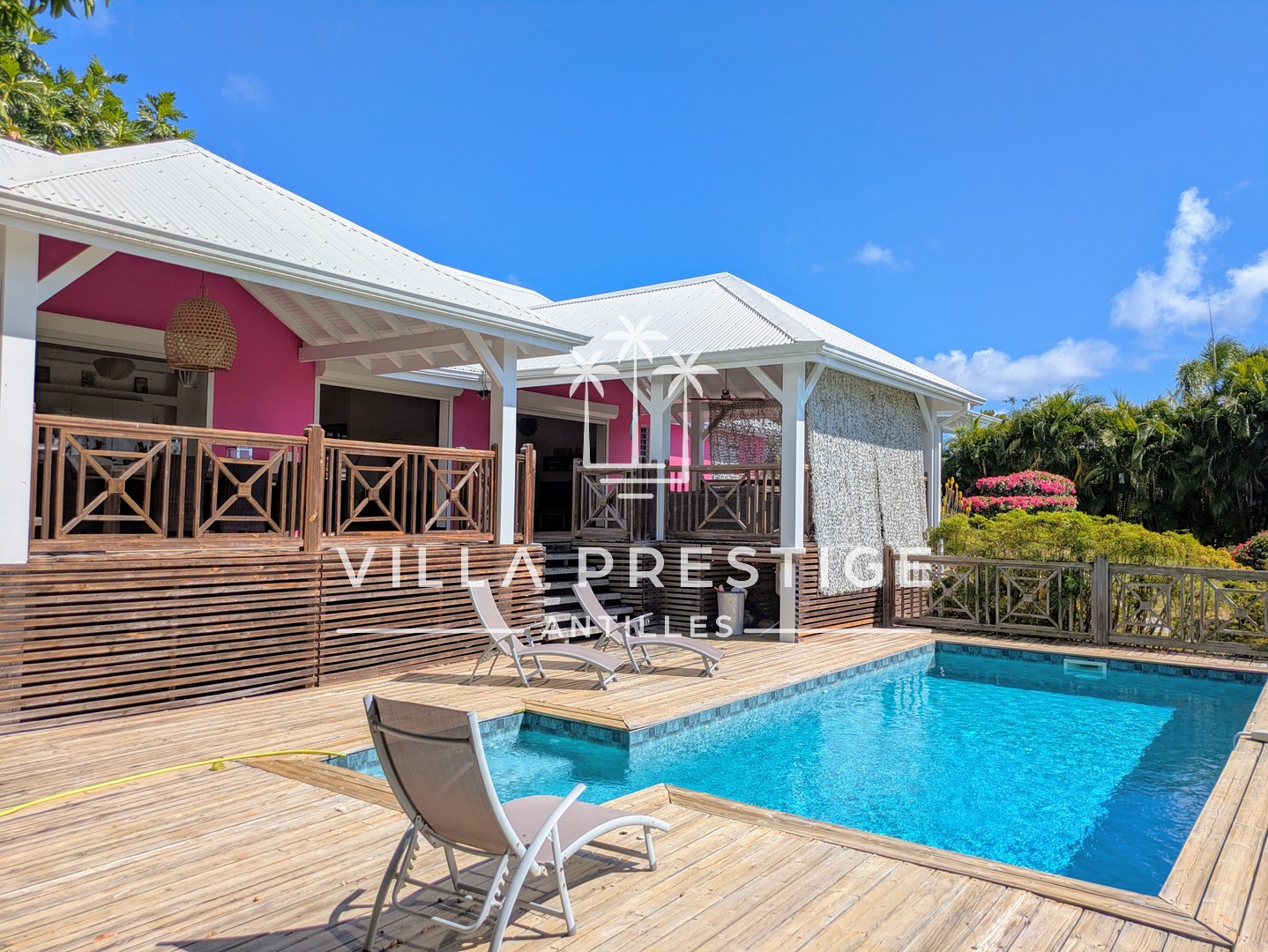 - Une piscine au sel d’environ 8×4 m, entourée d’un deck, parfaite pour apprécier le climat tropical en toute convivialité