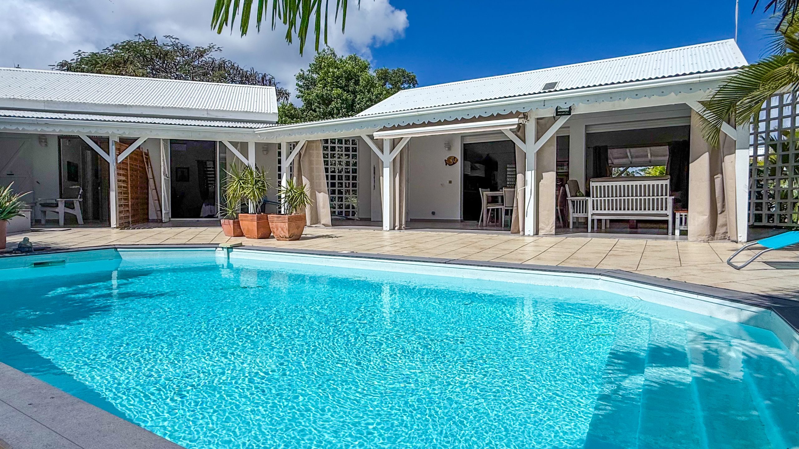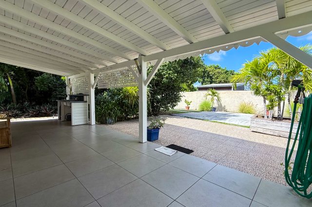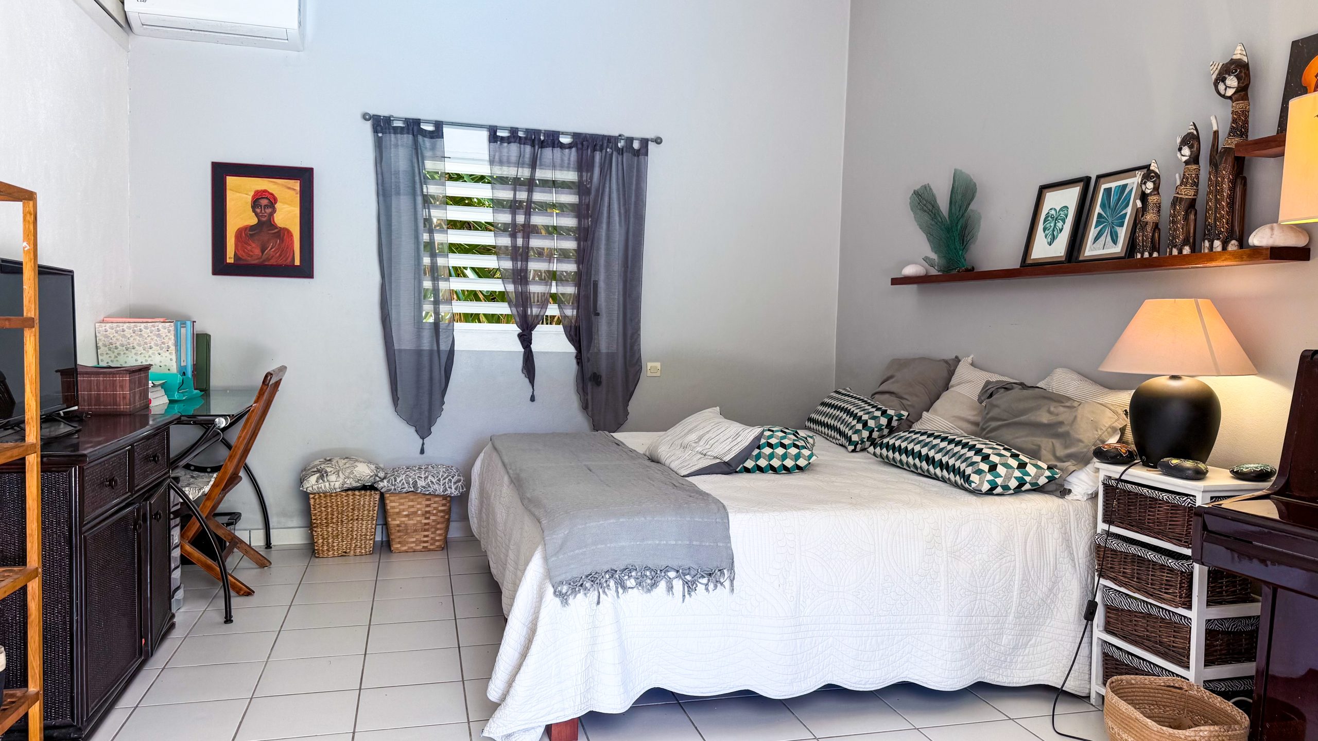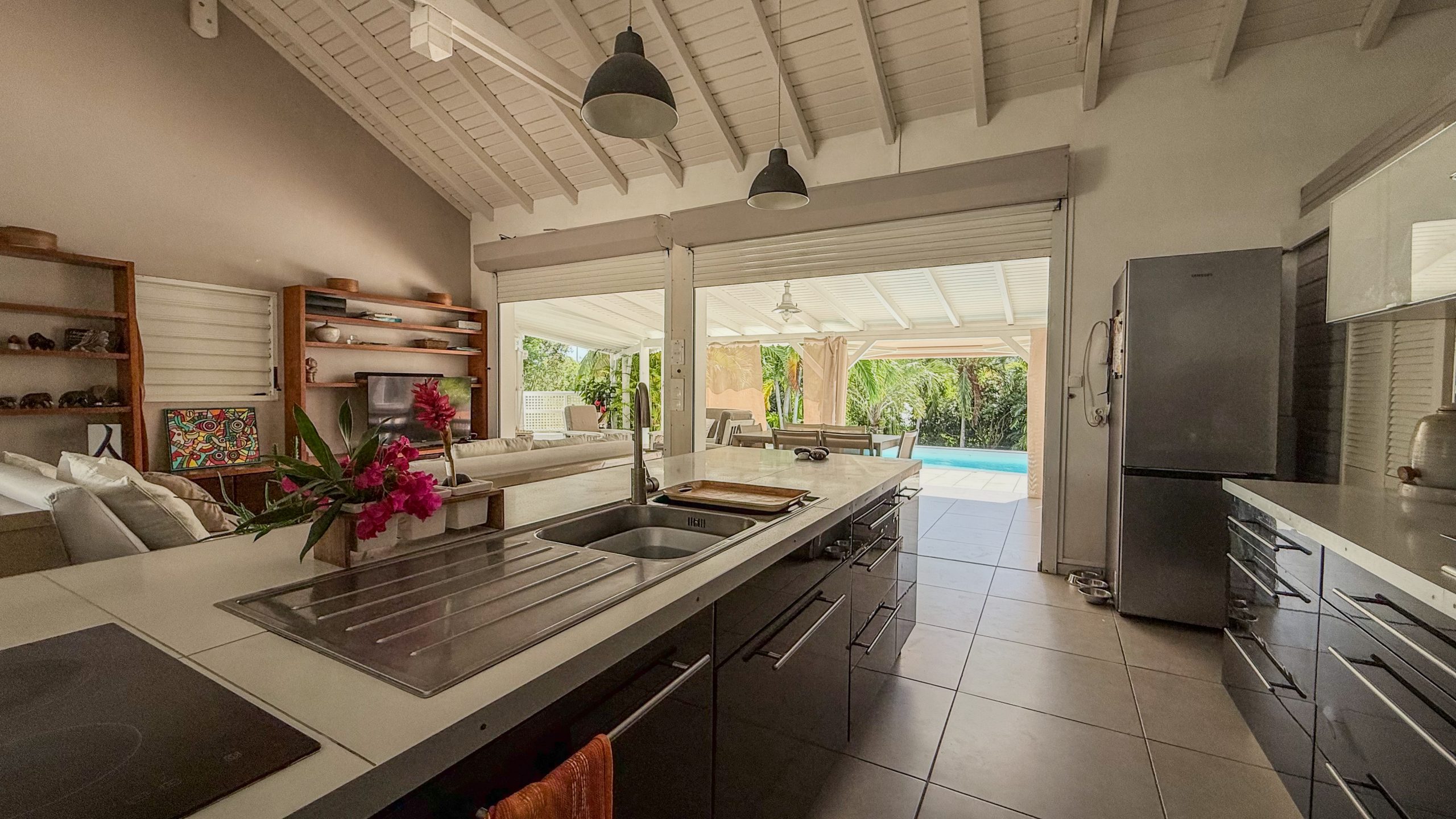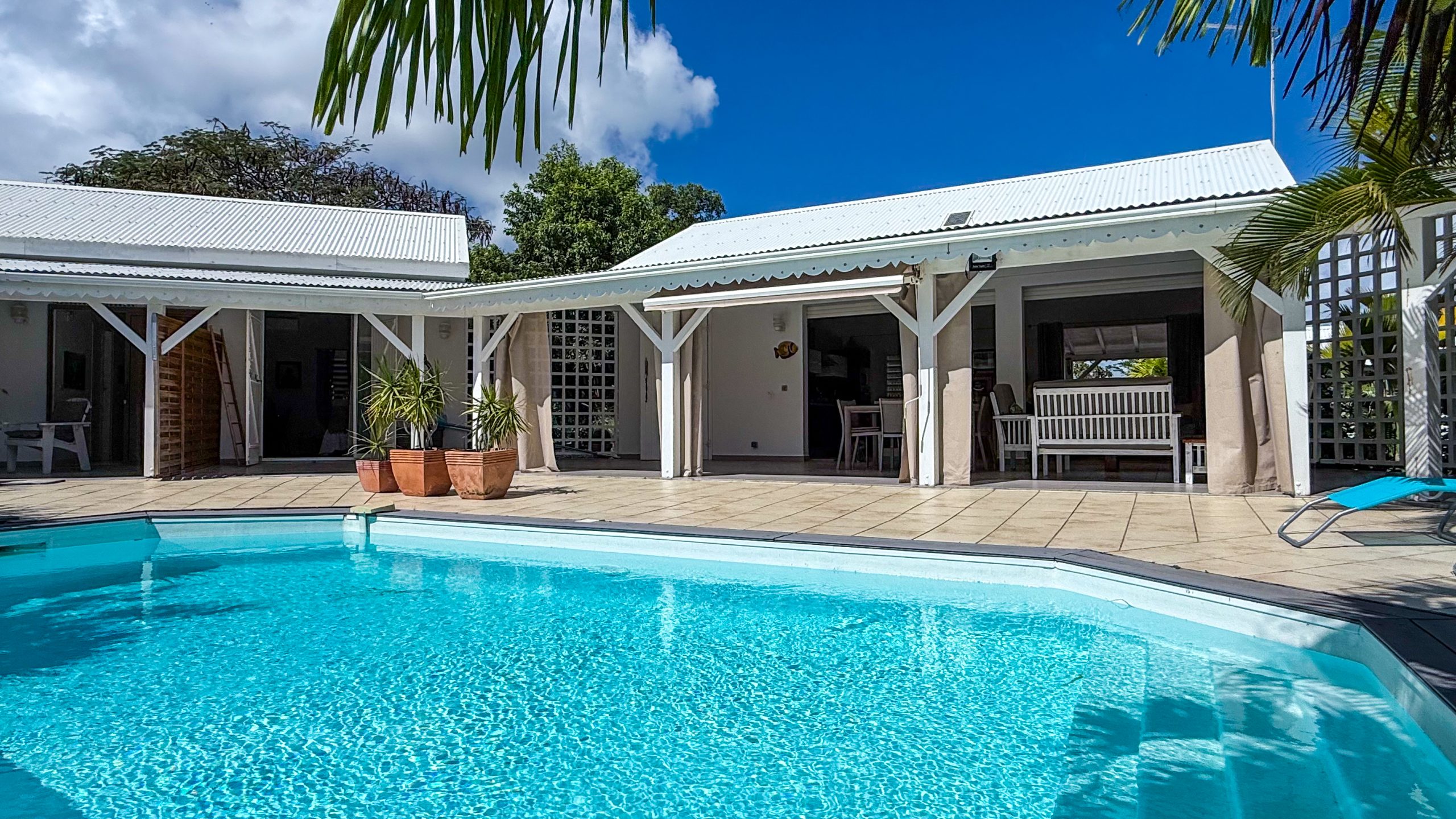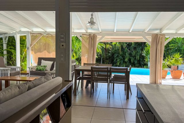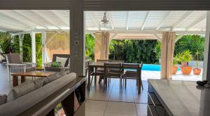 Située à seulement 6 minutes en voiture du bourg de Saint-François, station balnéaire prisée de la Guadeloupe, cette villa de plain-pied vous séduira par son environnement calme, verdoyant et sans vis-à-vis.
