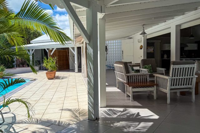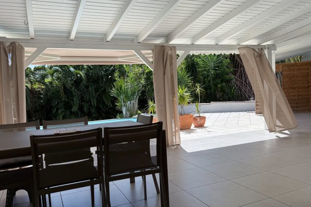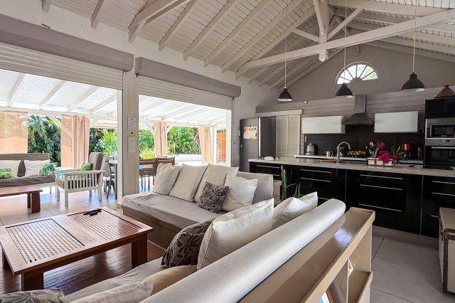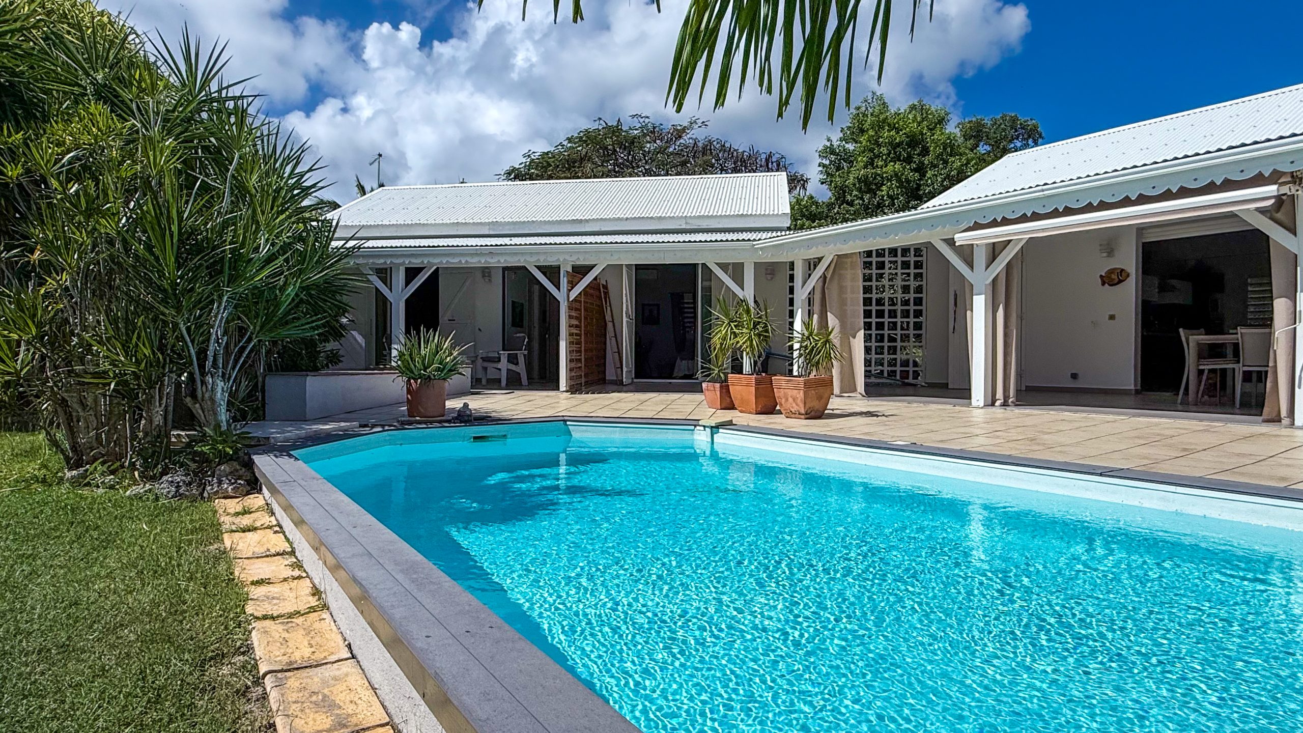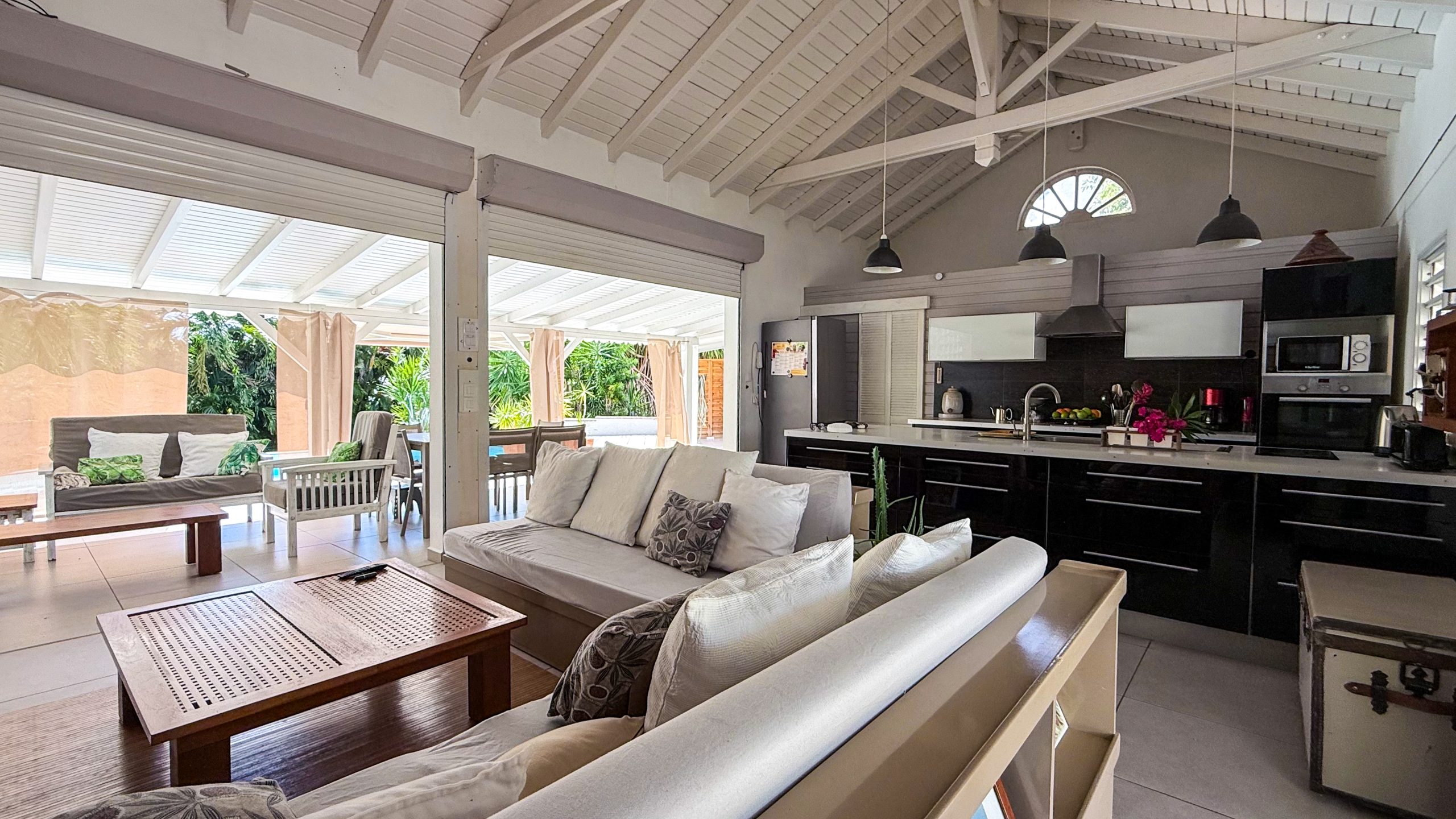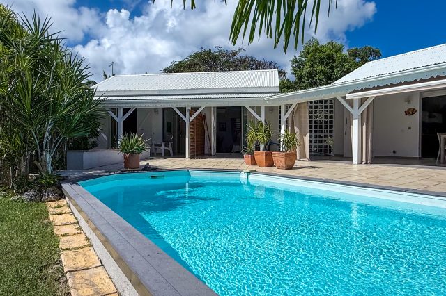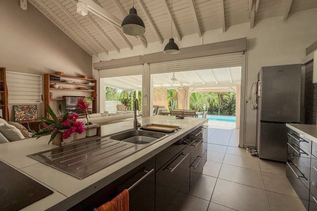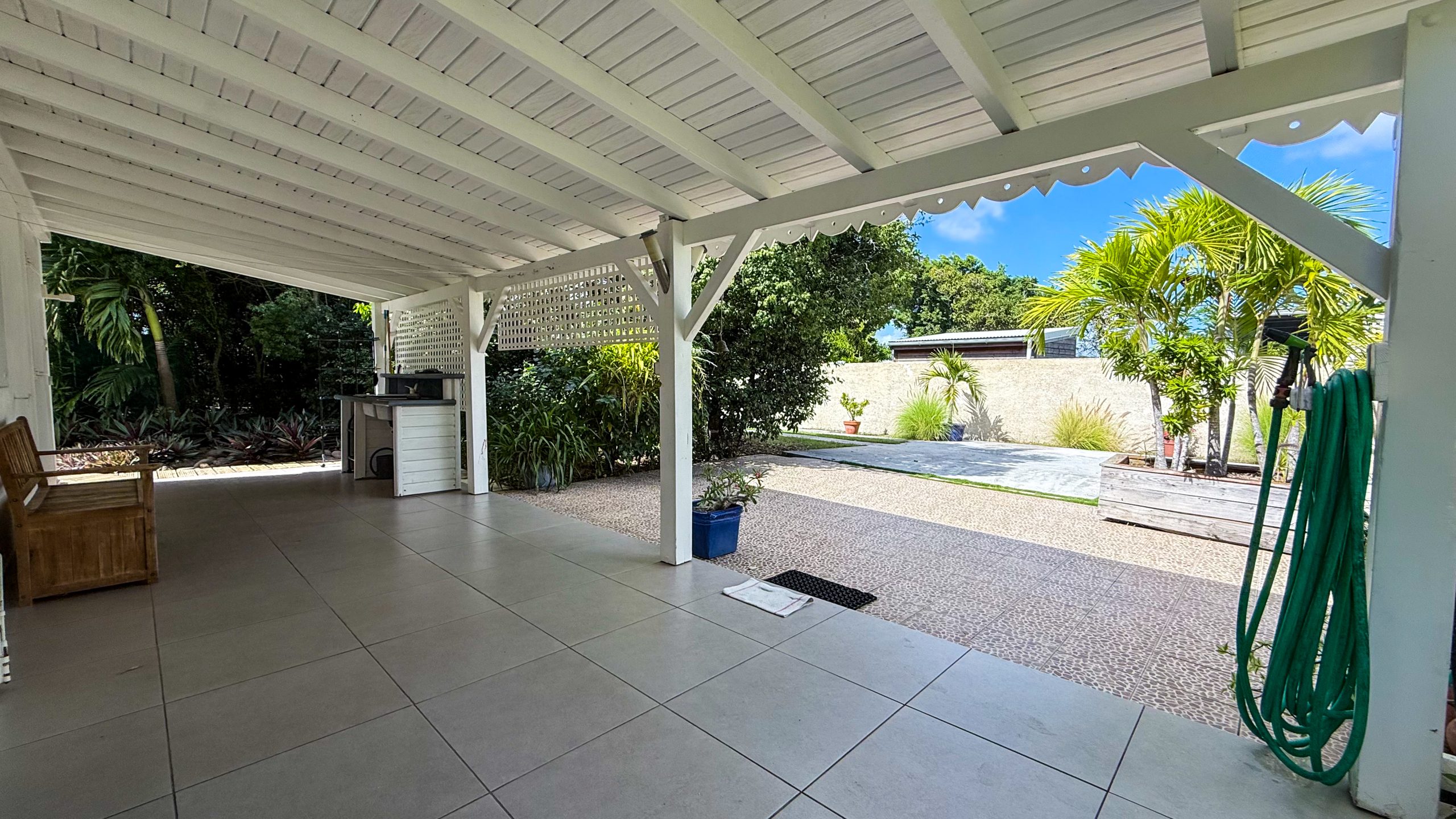 Située à seulement 6 minutes en voiture du bourg de Saint-François, station balnéaire prisée de la Guadeloupe, cette villa de plain-pied vous séduira par son environnement calme, verdoyant et sans vis-à-vis.