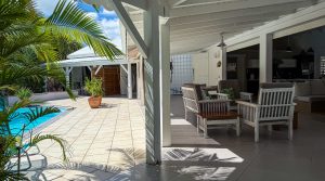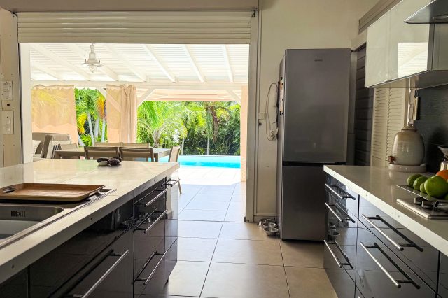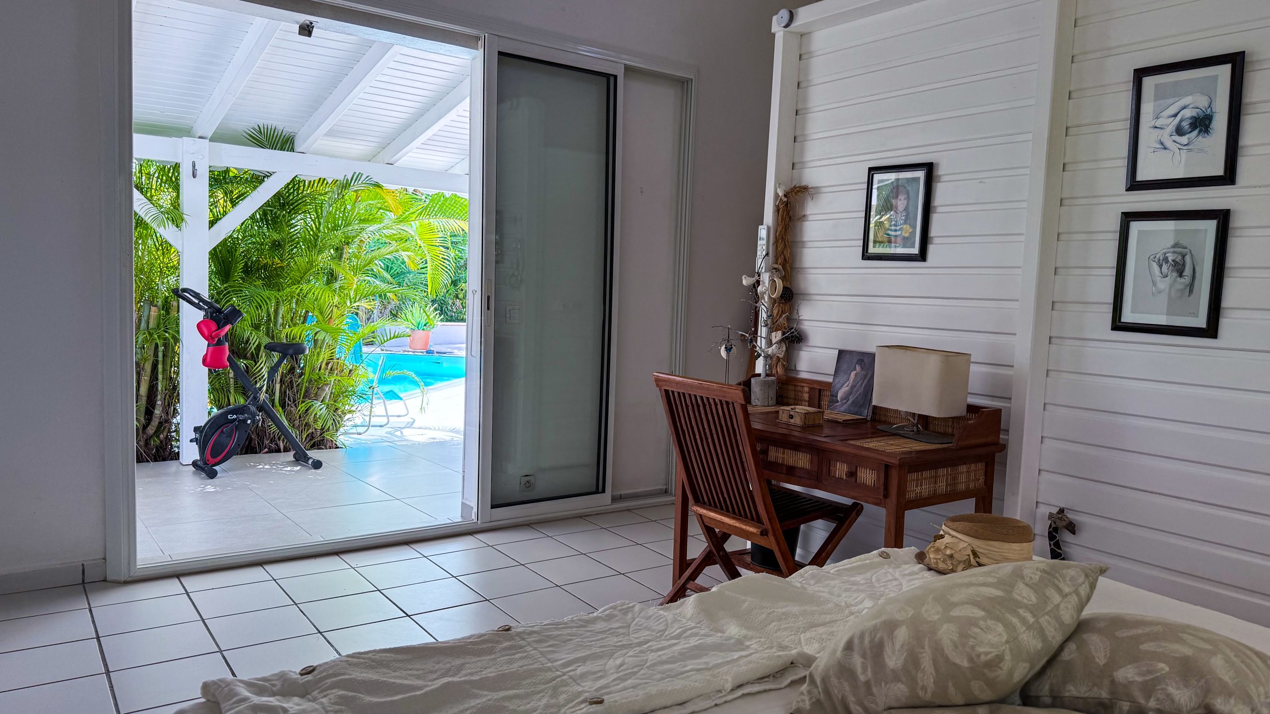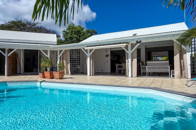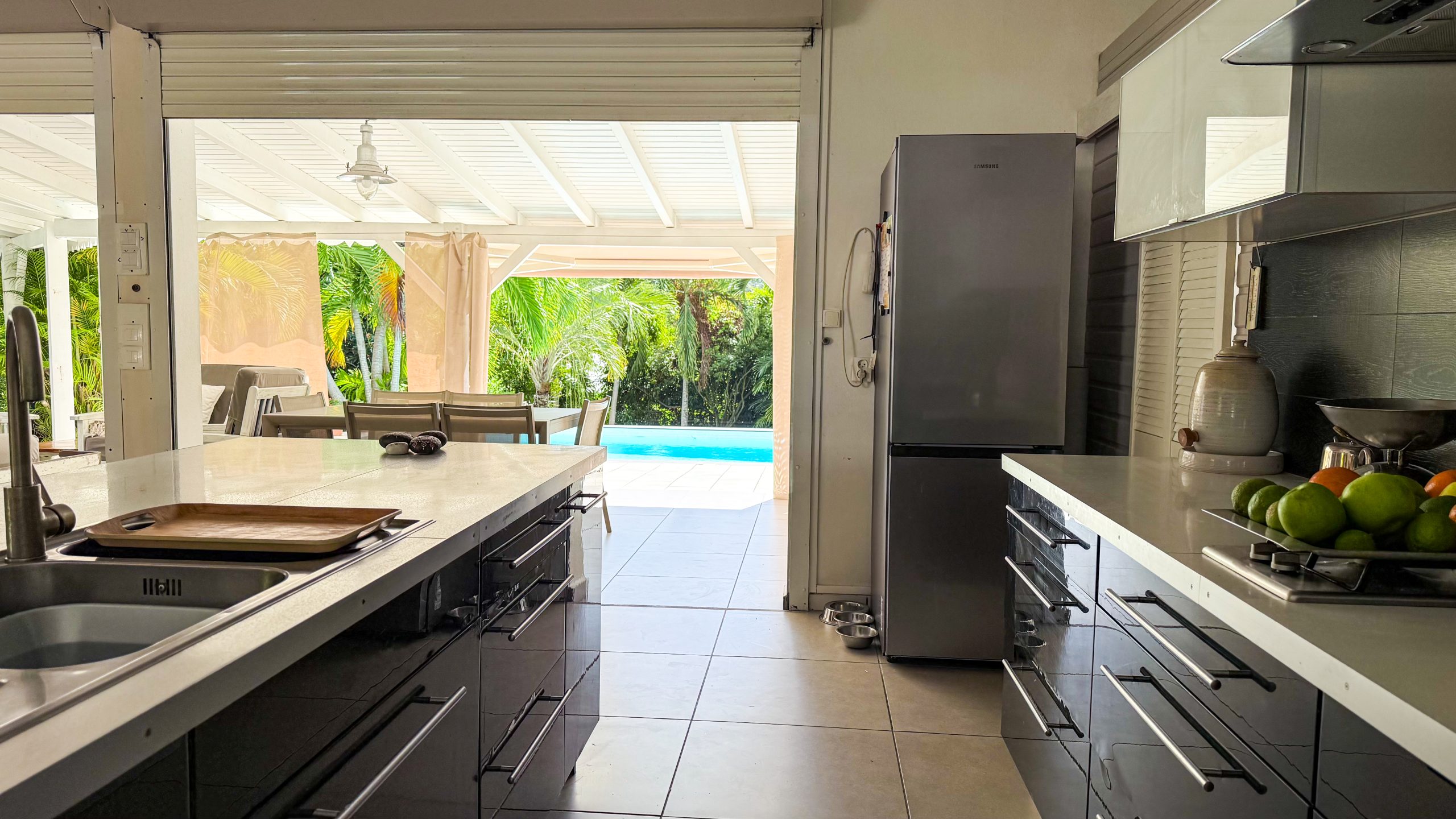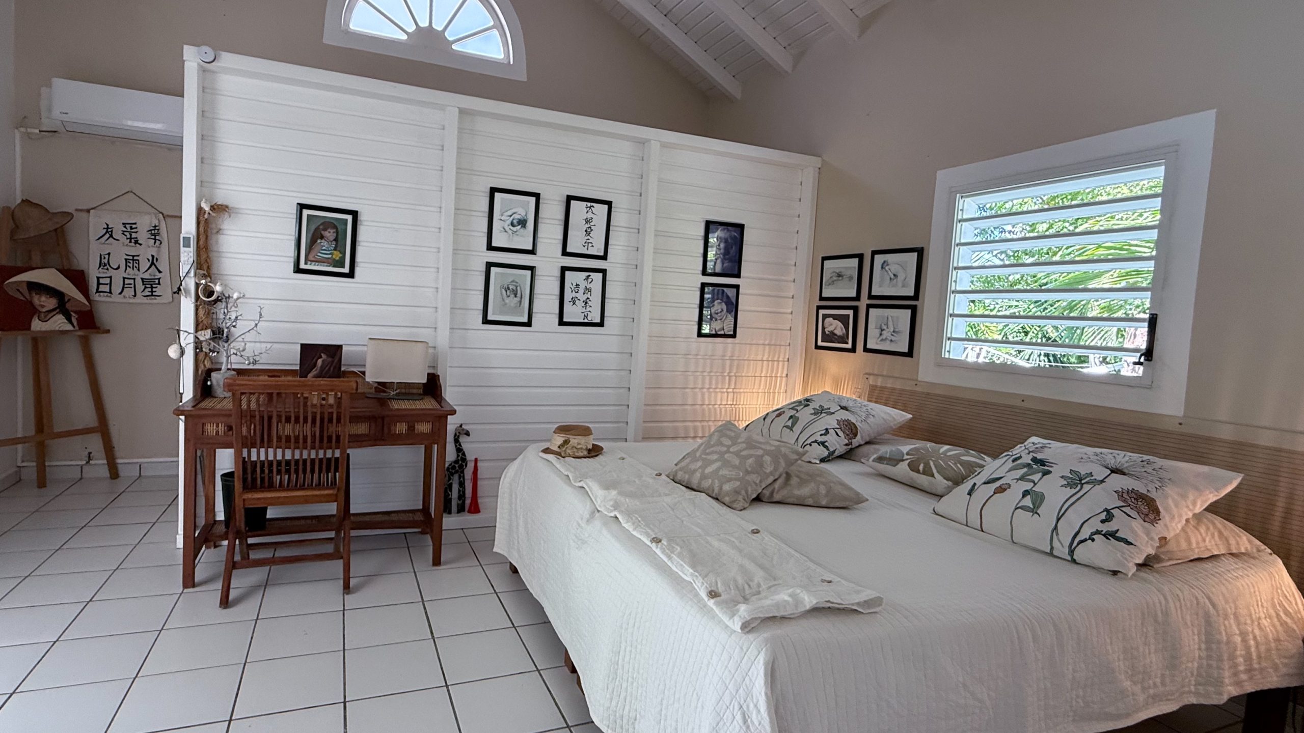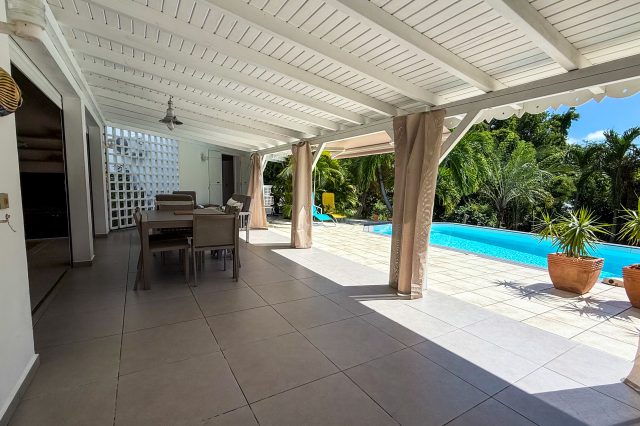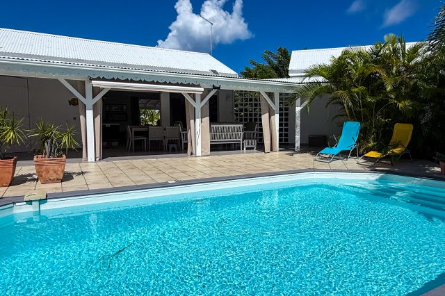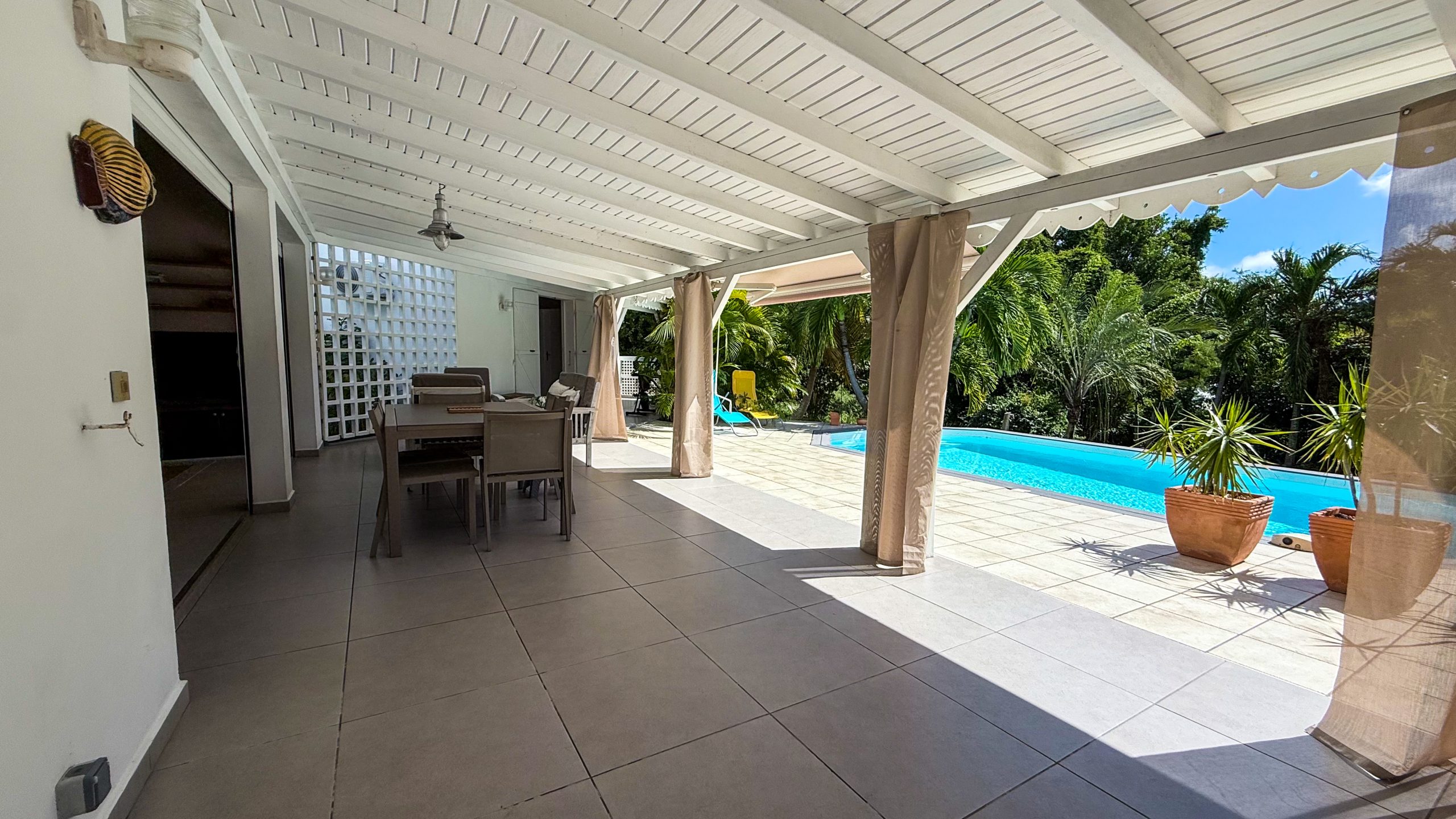 Située à seulement 6 minutes en voiture du bourg de Saint-François, station balnéaire prisée de la Guadeloupe, cette villa de plain-pied vous séduira par son environnement calme, verdoyant et sans vis-à-vis.