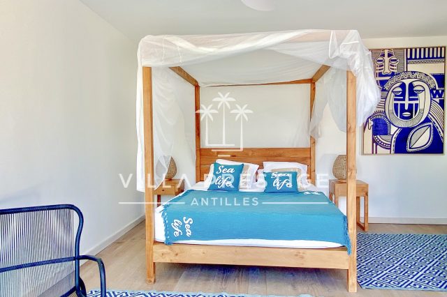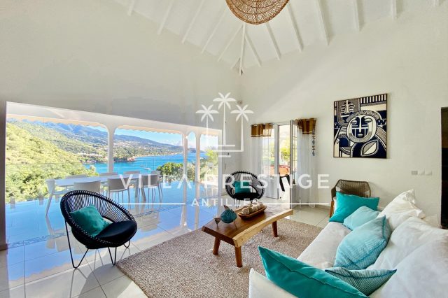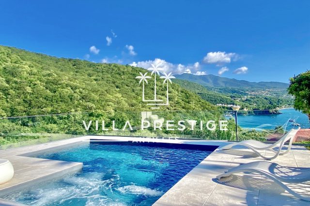 Entre le bleu de la mer et les reliefs verts de la Basse-Terre cette villa 5★ offre un vrai décor de carte postale.