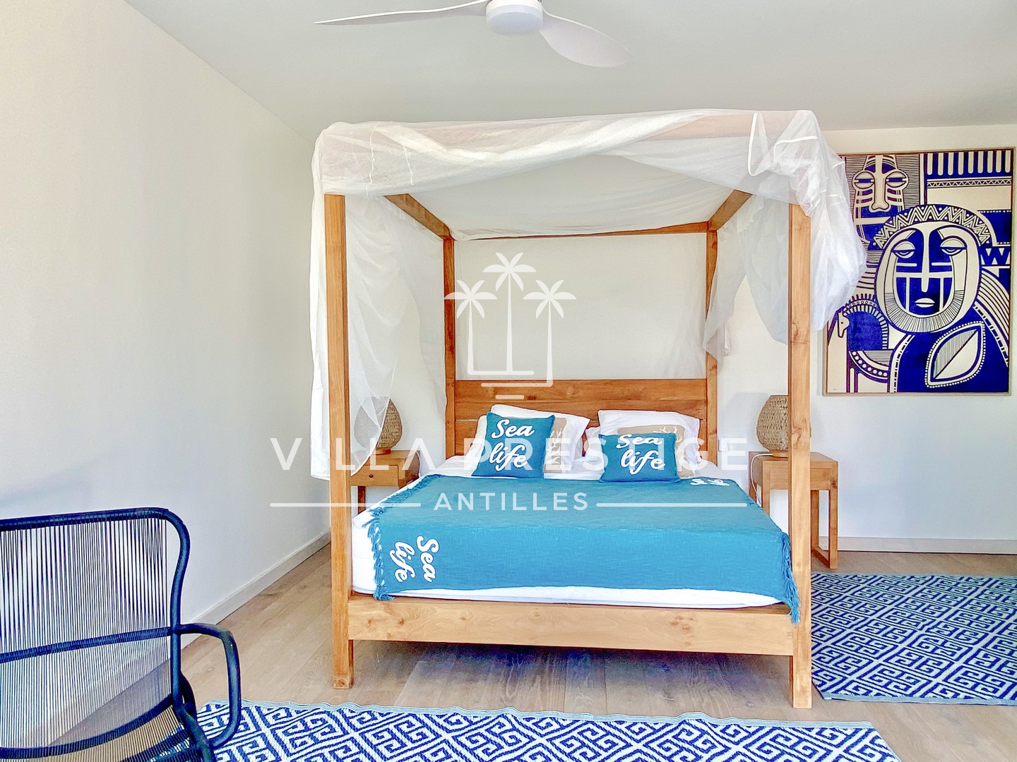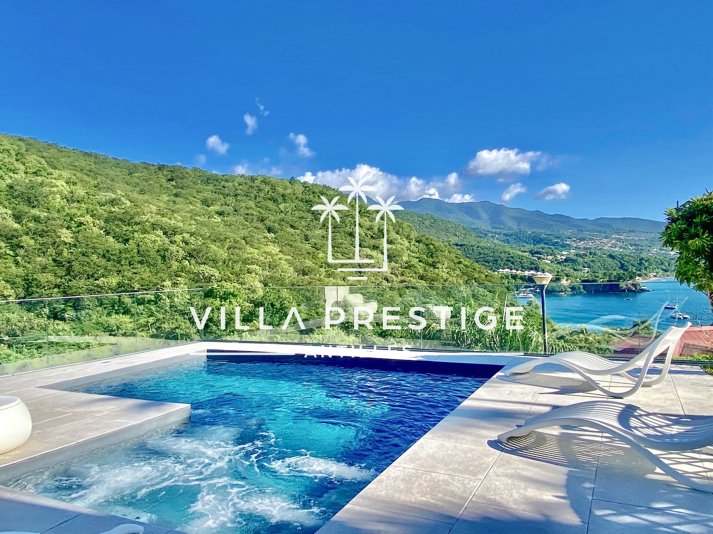 Entre le bleu de la mer et les reliefs verts de la Basse-Terre cette villa 5★ offre un vrai décor de carte postale.