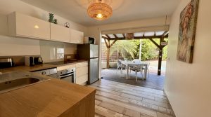 Un portail séparé donne accès à deux logements à l’arrière de la villa, offrant une entrée totalement indépendante :