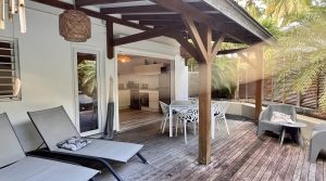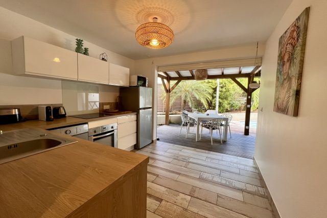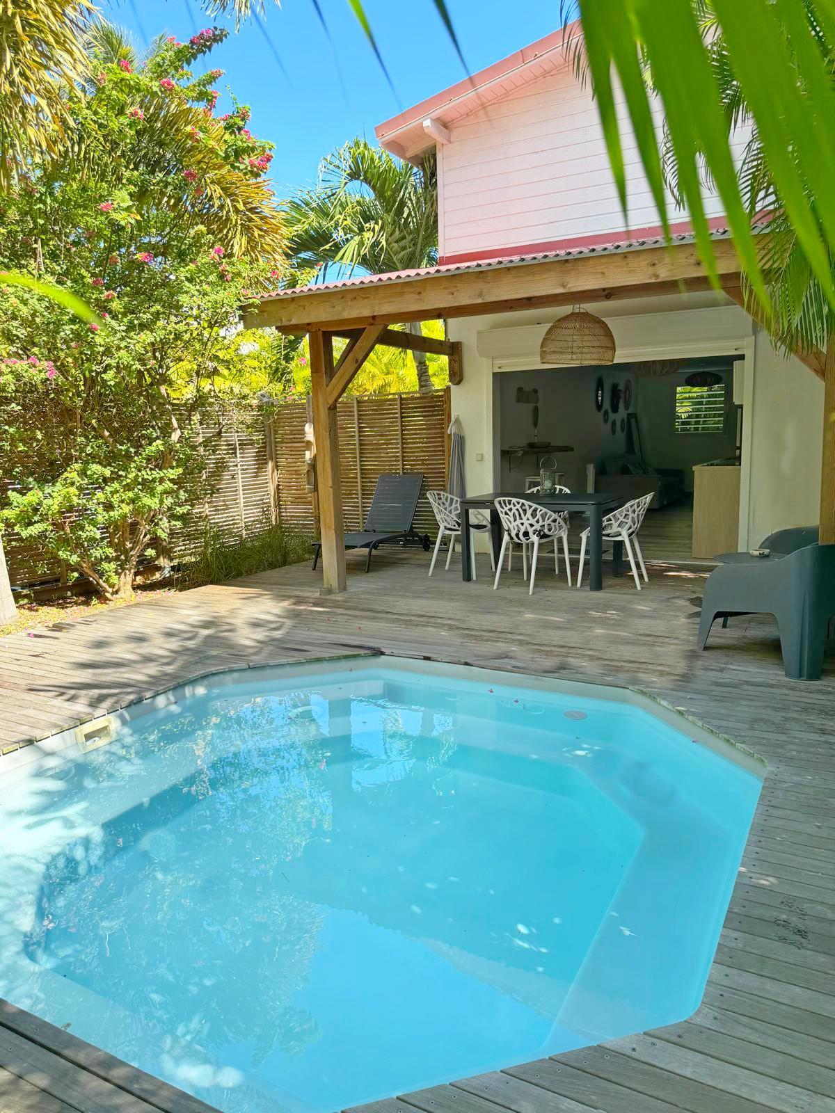 • Logement 2 (≈ 34 m²) : 1 chambre, cuisine, salle d’eau, terrasse couverte, bar à punch, petite piscine privative et jardin