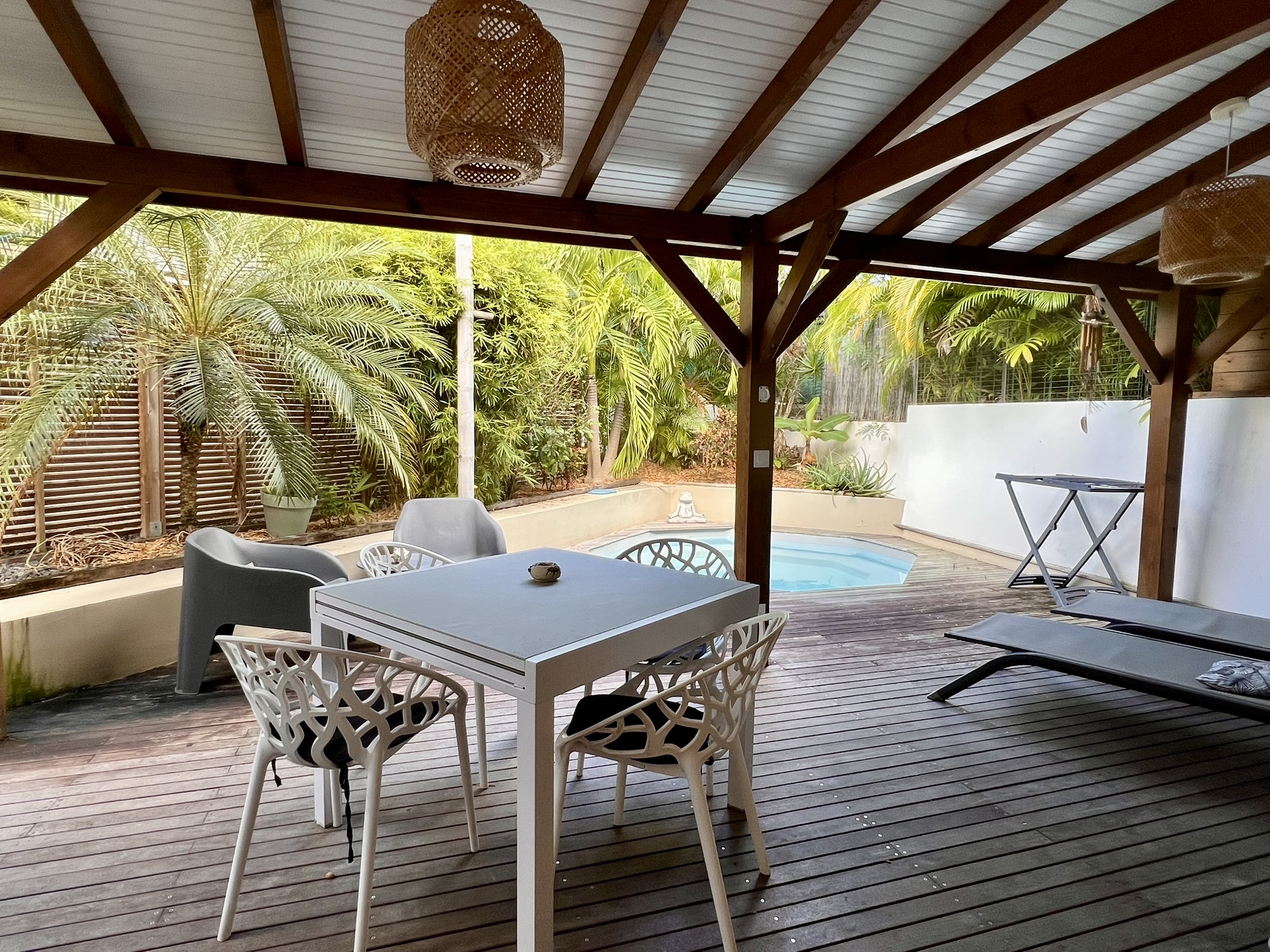• Logement 2 (≈ 34 m²) : 1 chambre, cuisine, salle d’eau, terrasse couverte, bar à punch, petite piscine privative et jardin