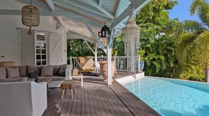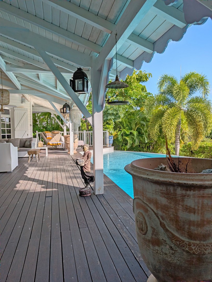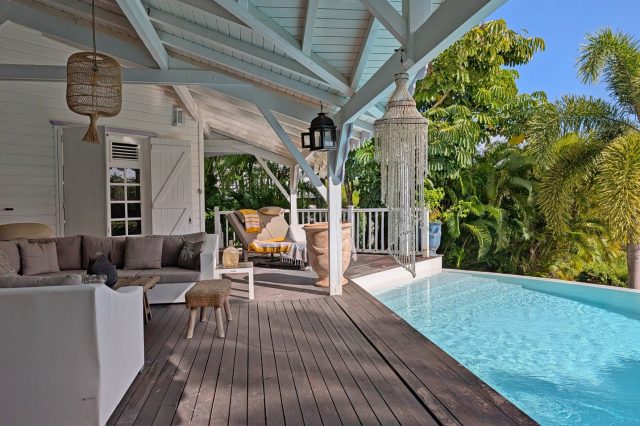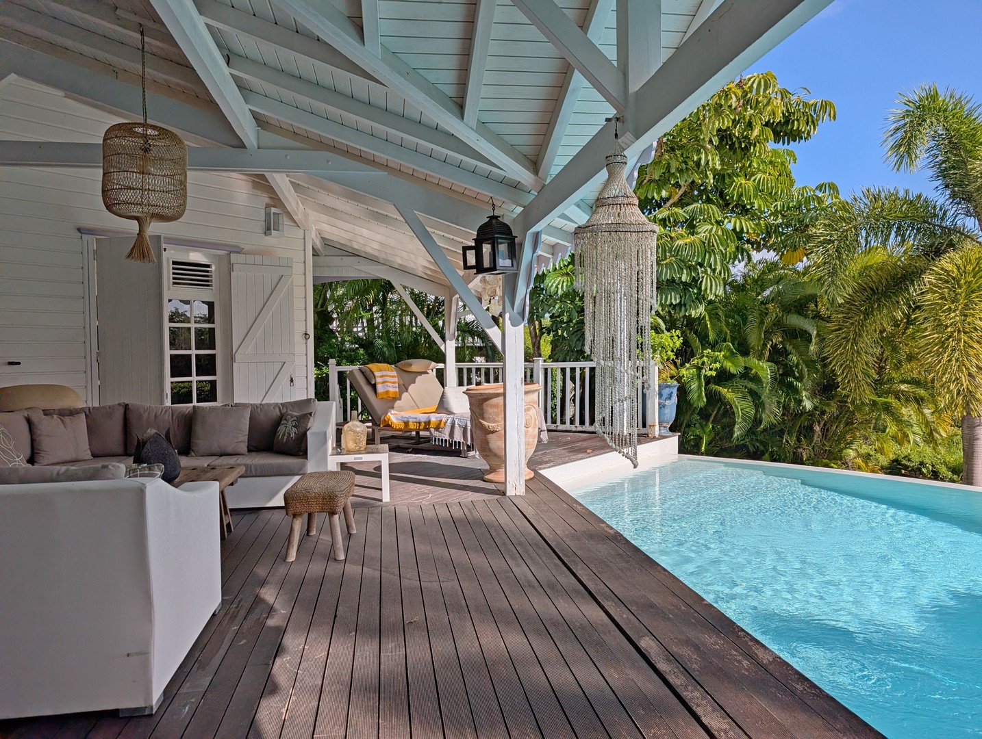 La master suite, véritable havre de paix, bénéficie d’un parquet en bois rouge IP, d’un grand dressing et d’une salle d’eau complète. Elle offre surtout un accès direct à la piscine au sel grâce à une double porte ouvrant sur le deck en IP, invitant naturellement à la détente.