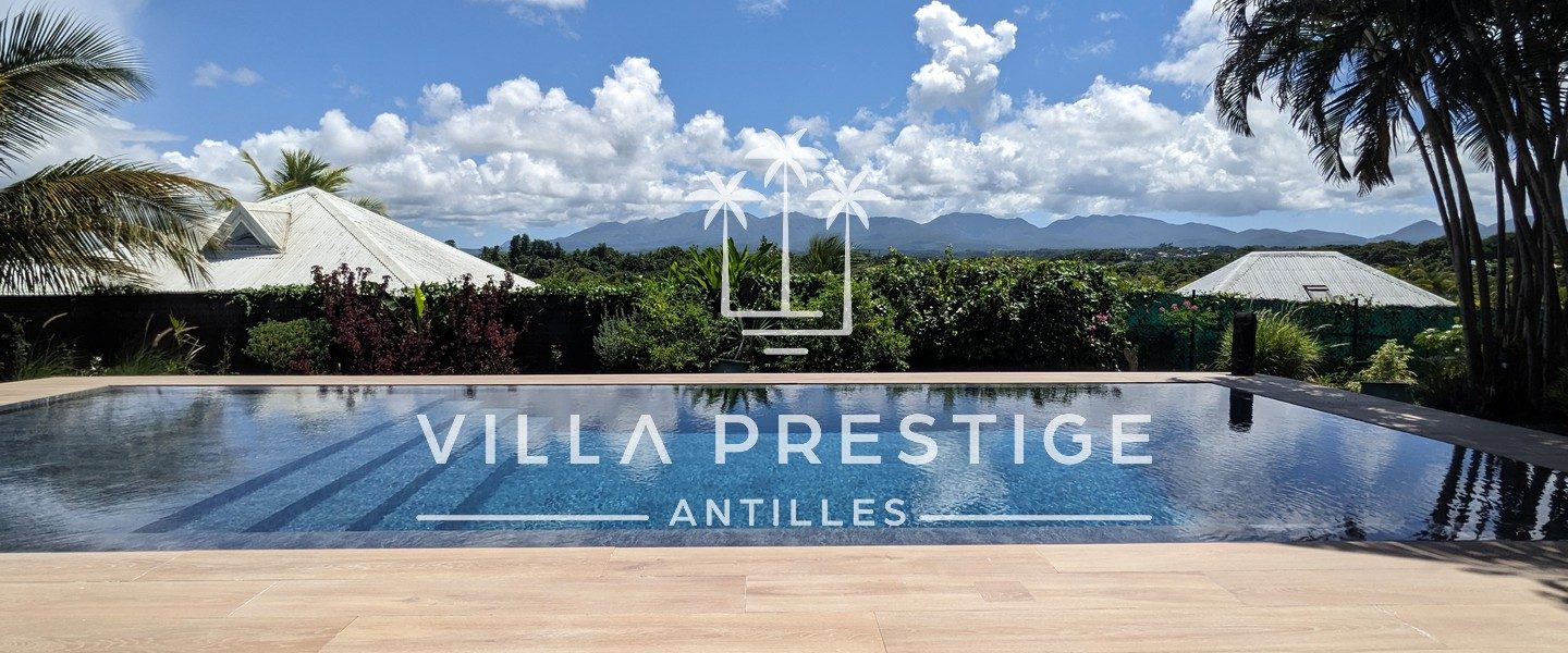 › Orientation / Vue› Vue montagne› Proximité› Commerces, Ecoles› A moins de 5 min de Jarry› Particularités› De plain pied› Vue panoramique› Villa domotisée› Caméra à distance› Quartier résidentiel› En lotissement› Vue imprenable› Equipements› Garage› Volets roulants électriques› panneaux solaires› Climatisation› Combles› Alarme› Citerne d'eau› Cuisine américaine› Buanderie› Extérieur› Local piscine› Place de parking› Piscine› Portail électrique› Terrain› COS Résiduel› Arbres fruitiers› Arboré› Clôturé