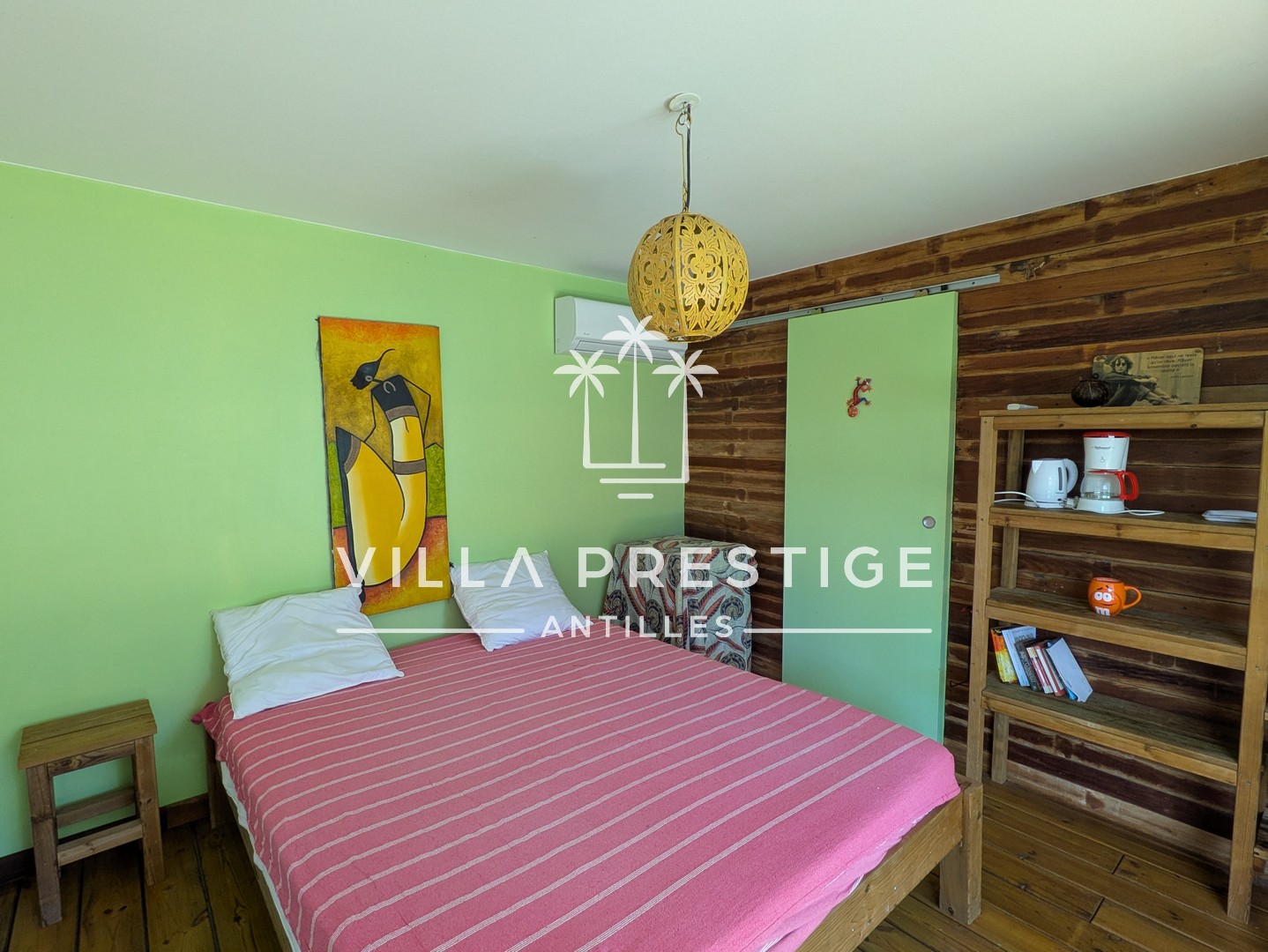 Le bungalow de 20 m² est constitué d’une chambre et d’une salle d’eau et est ouvert sur le jardin arboré. Idéal pour recevoir en toute intimité ou pour générer un revenu locatif.