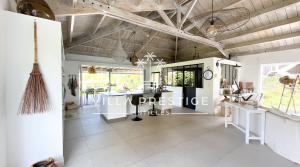 La villa peut être séparée en deux avec un espace de vie à l’étage et un espace professionnel indépendant (bureaux, atelier, …) au rez-de-jardin.