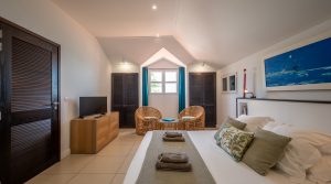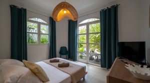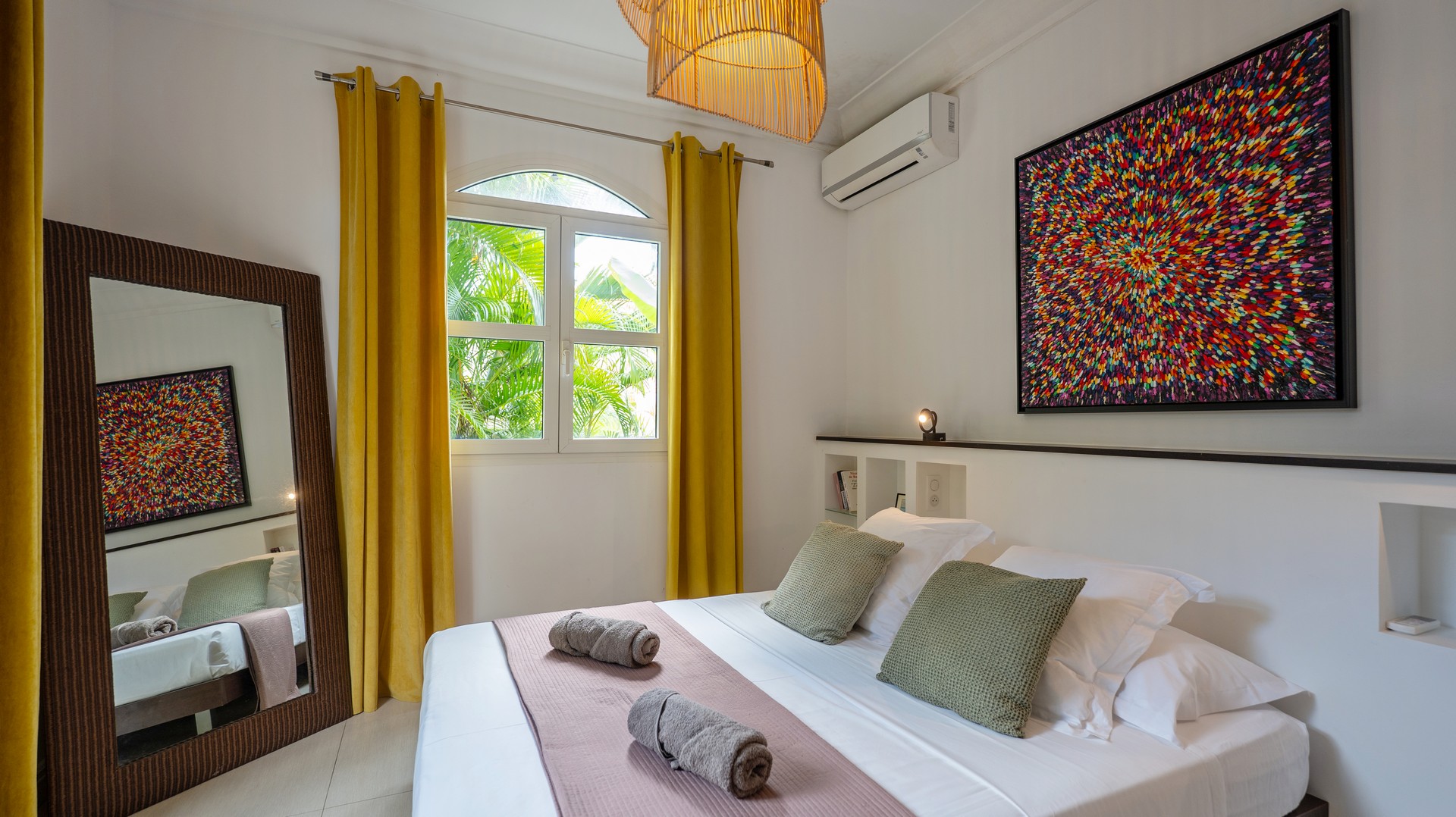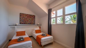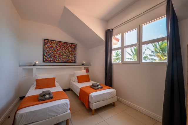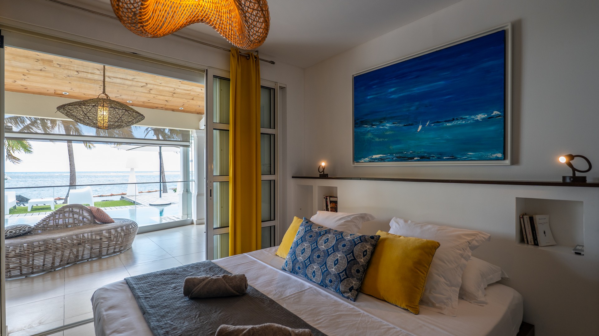 La villa s’étend sur de généreux volumes avec 6 chambres climatisées, toutes équipées de literie haut de gamme et de leur salle d’eau privative.