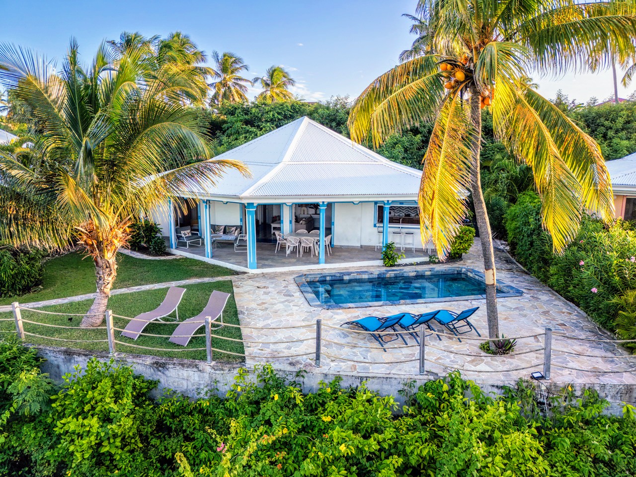 La villa et sa piscine ont été entièrement rénovées avec des matériaux de qualité, offrant confort et élégance.