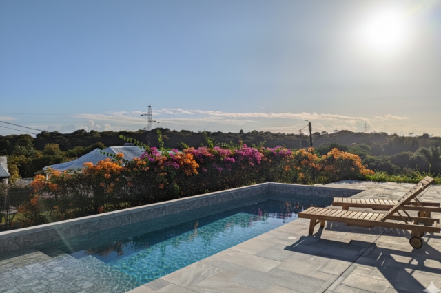 - Piscine de 13 mètres de long entourée d’une grande plage carrelée