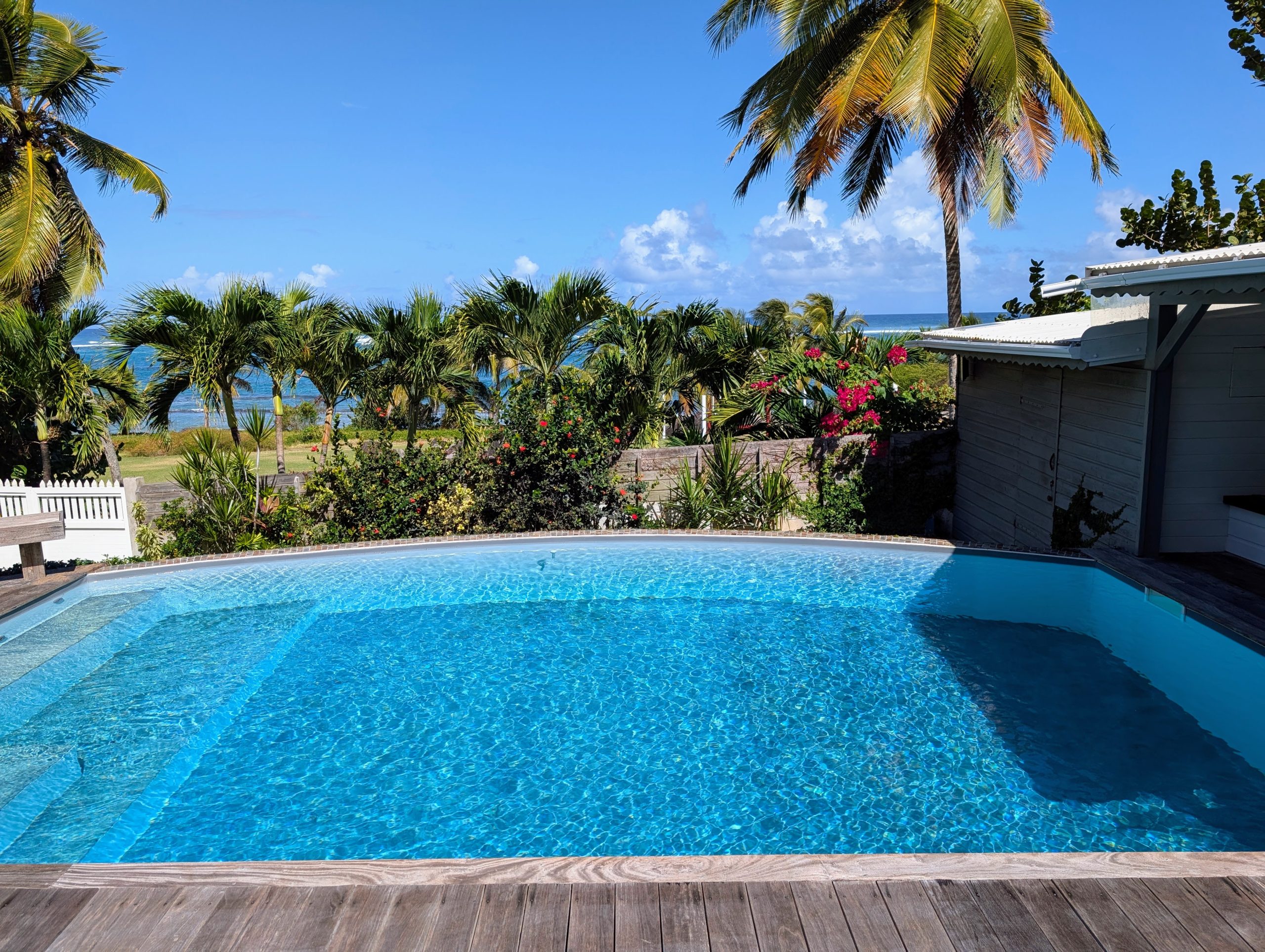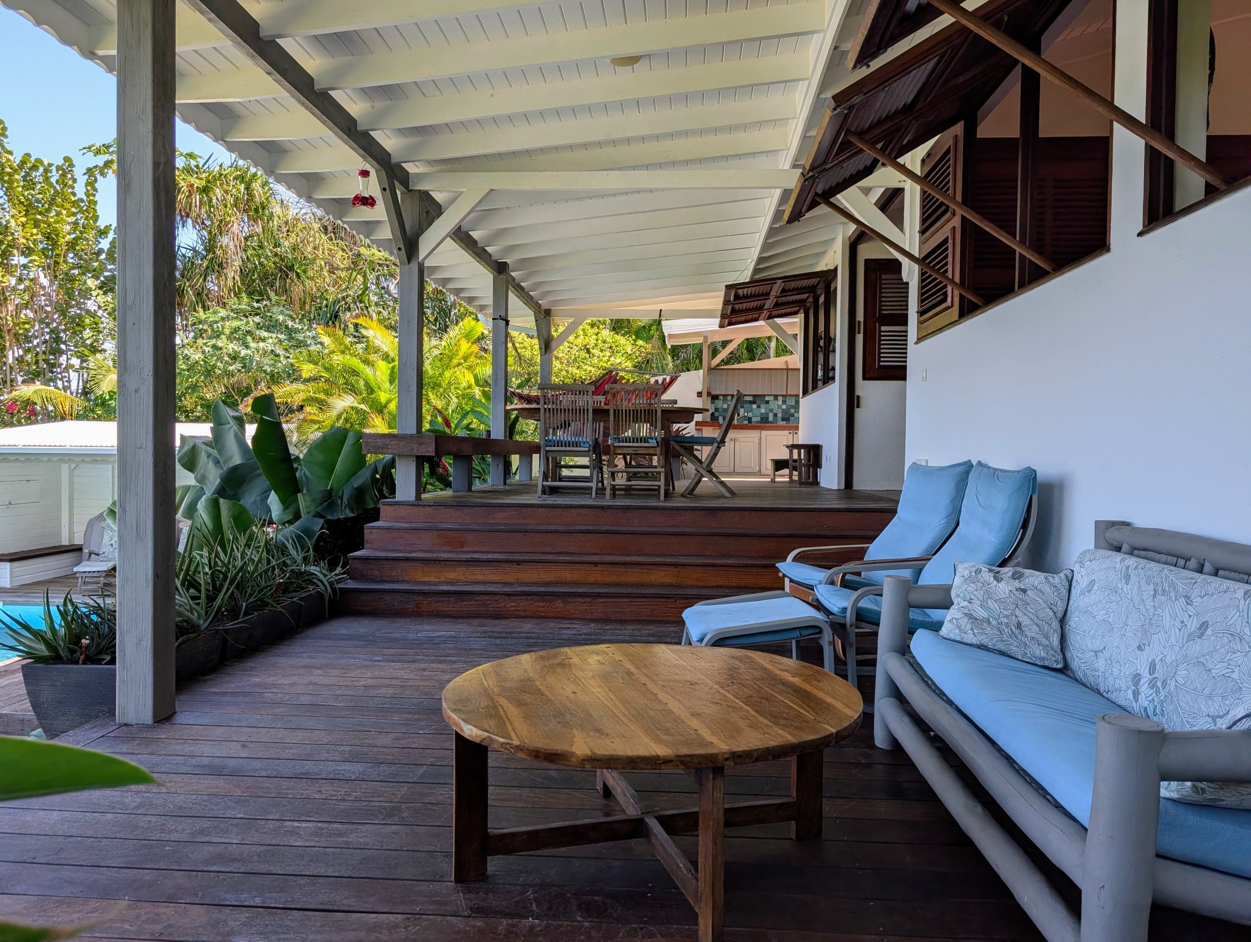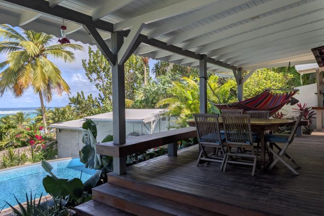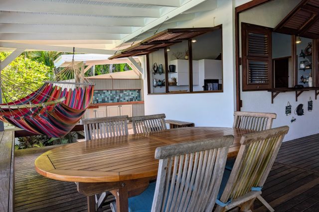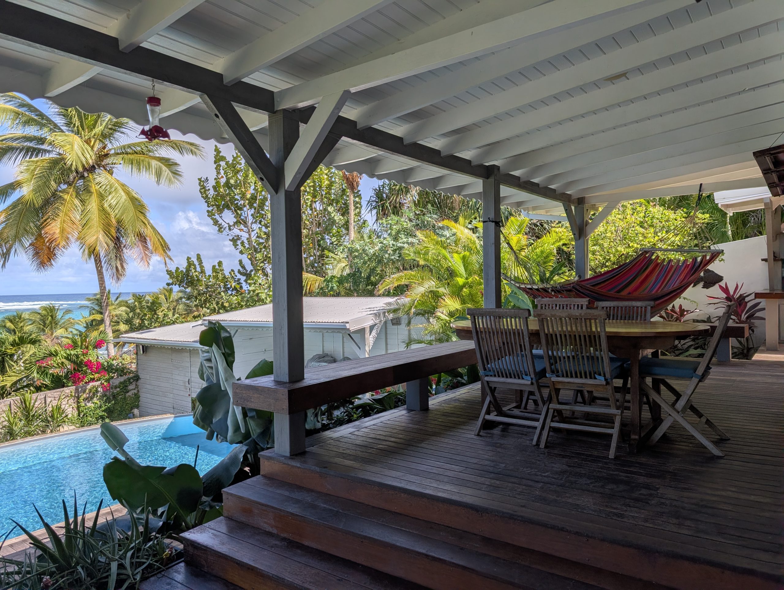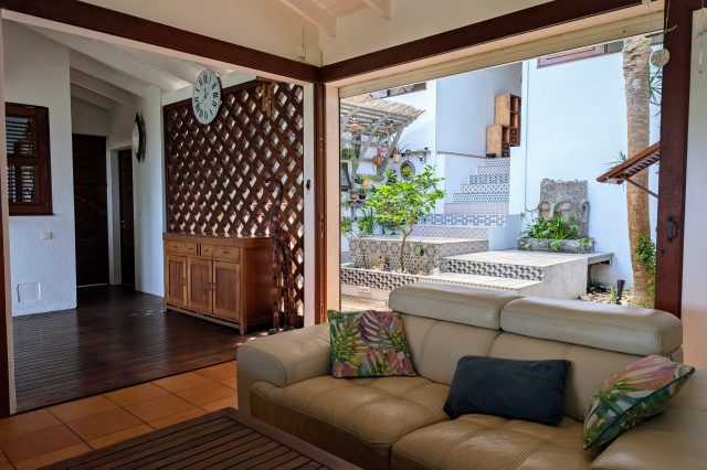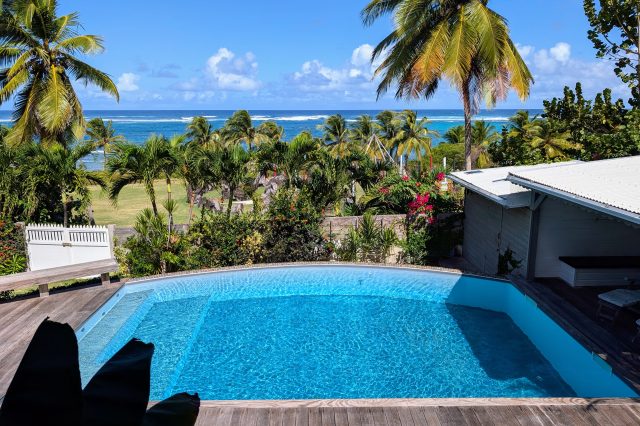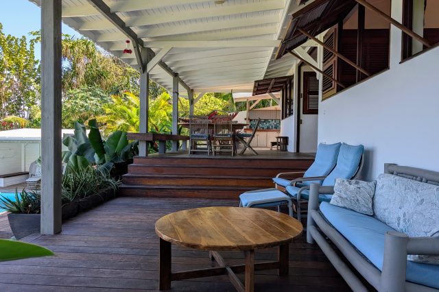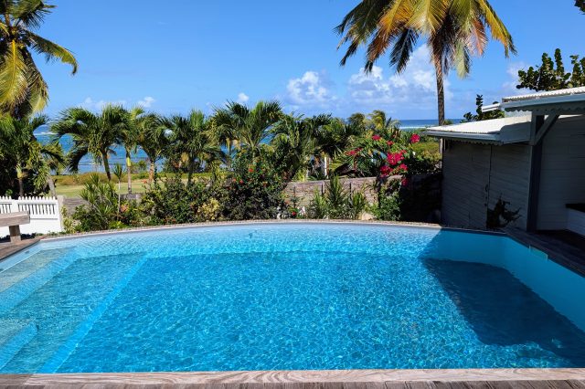 À l’extérieur, la piscine rénovée, le carbet et les différents espaces de détente créent une atmosphère de villa de standing, idéale pour recevoir et savourer la douceur de vivre des Antilles. Les équipements solaires et écologiques viennent compléter l’ensemble, apportant autonomie et valorisation durable du bien.