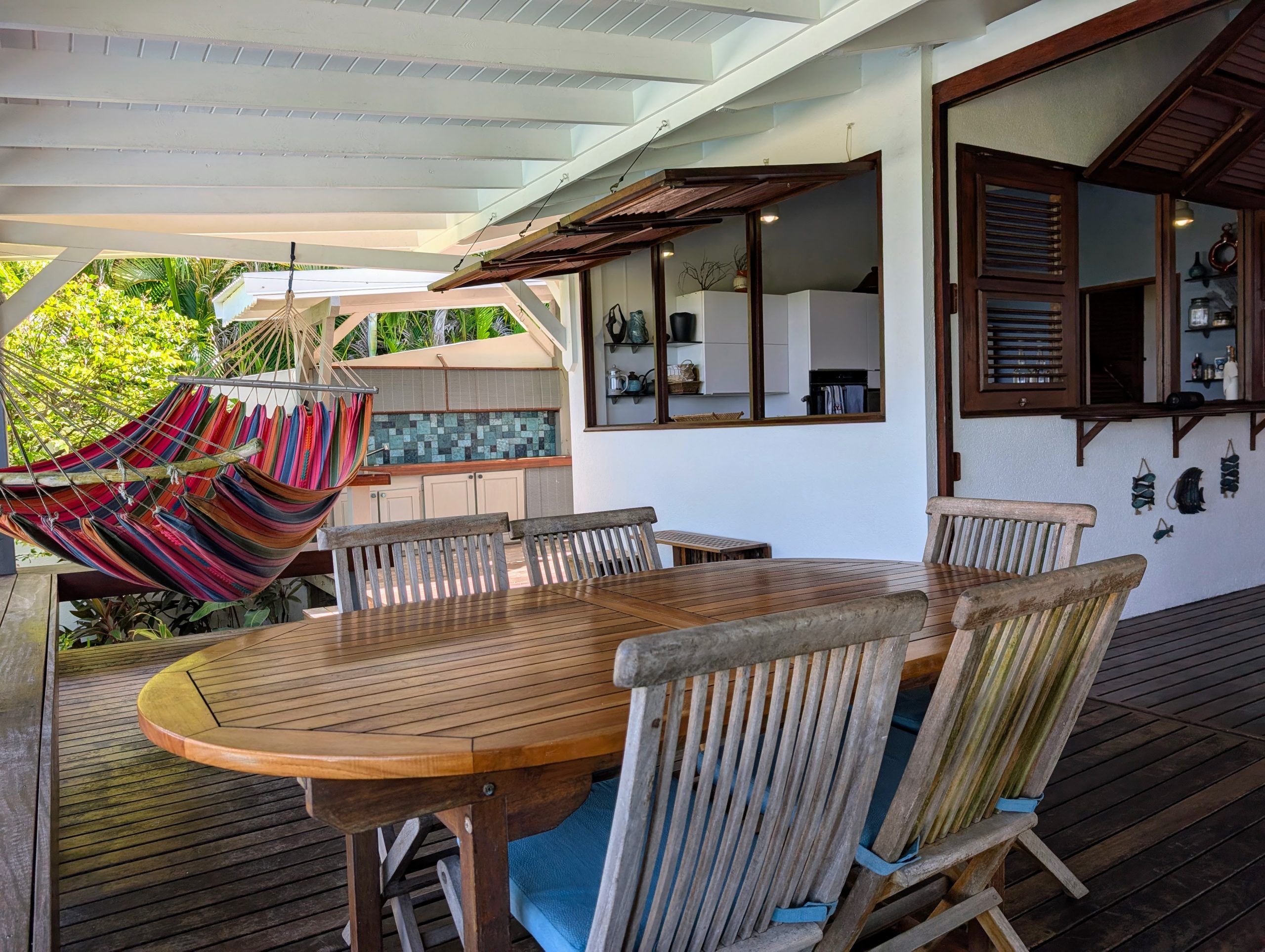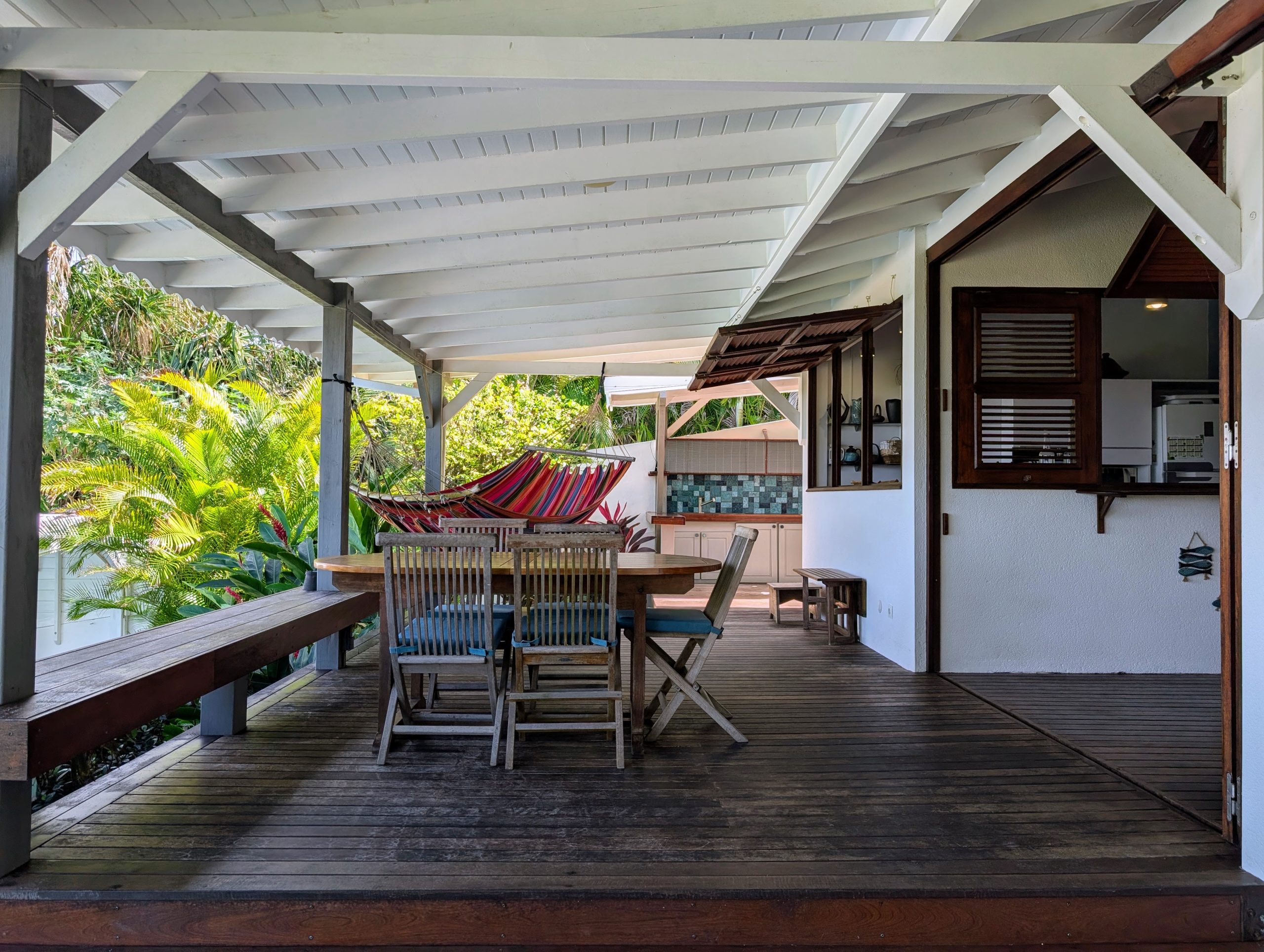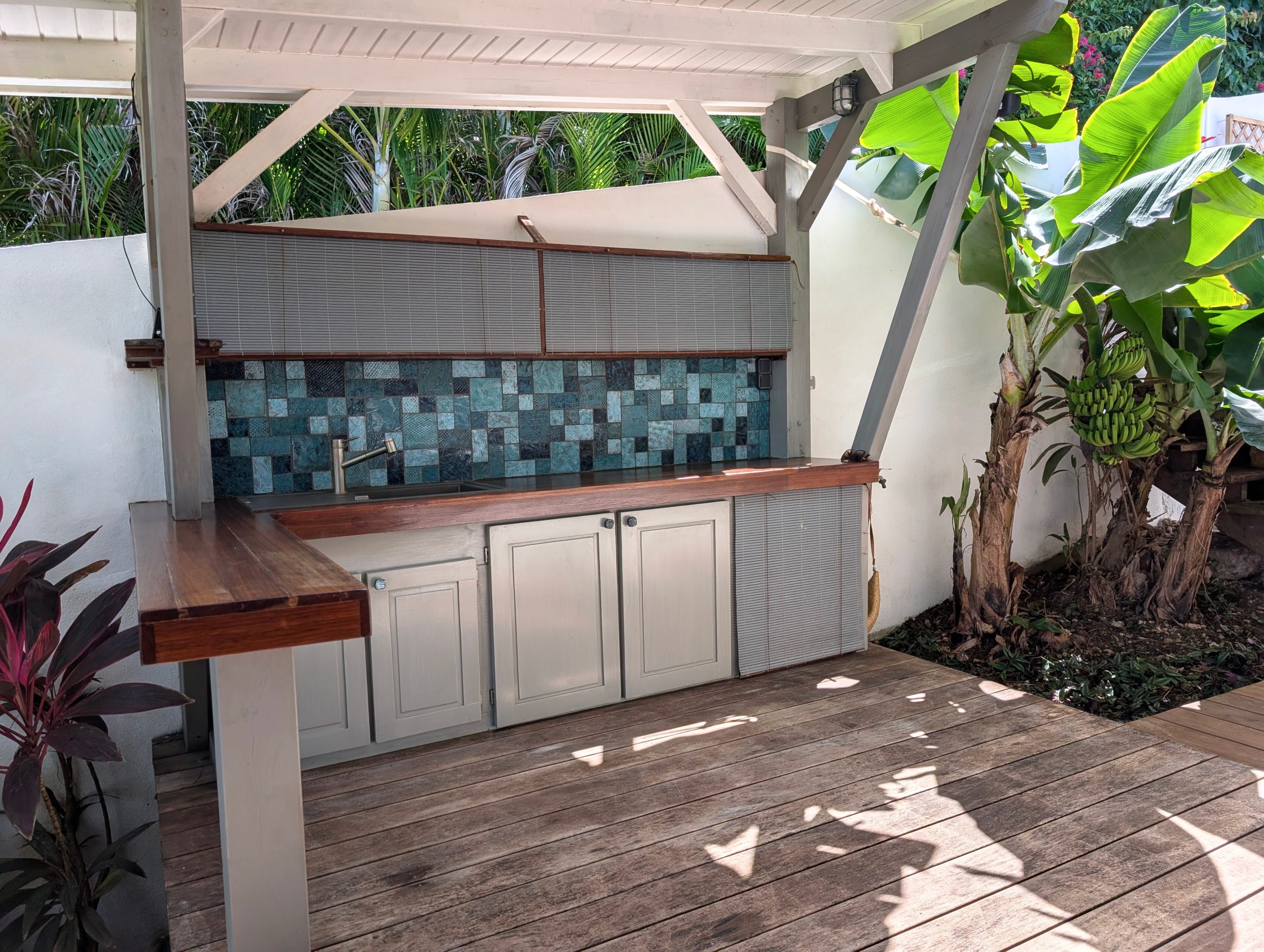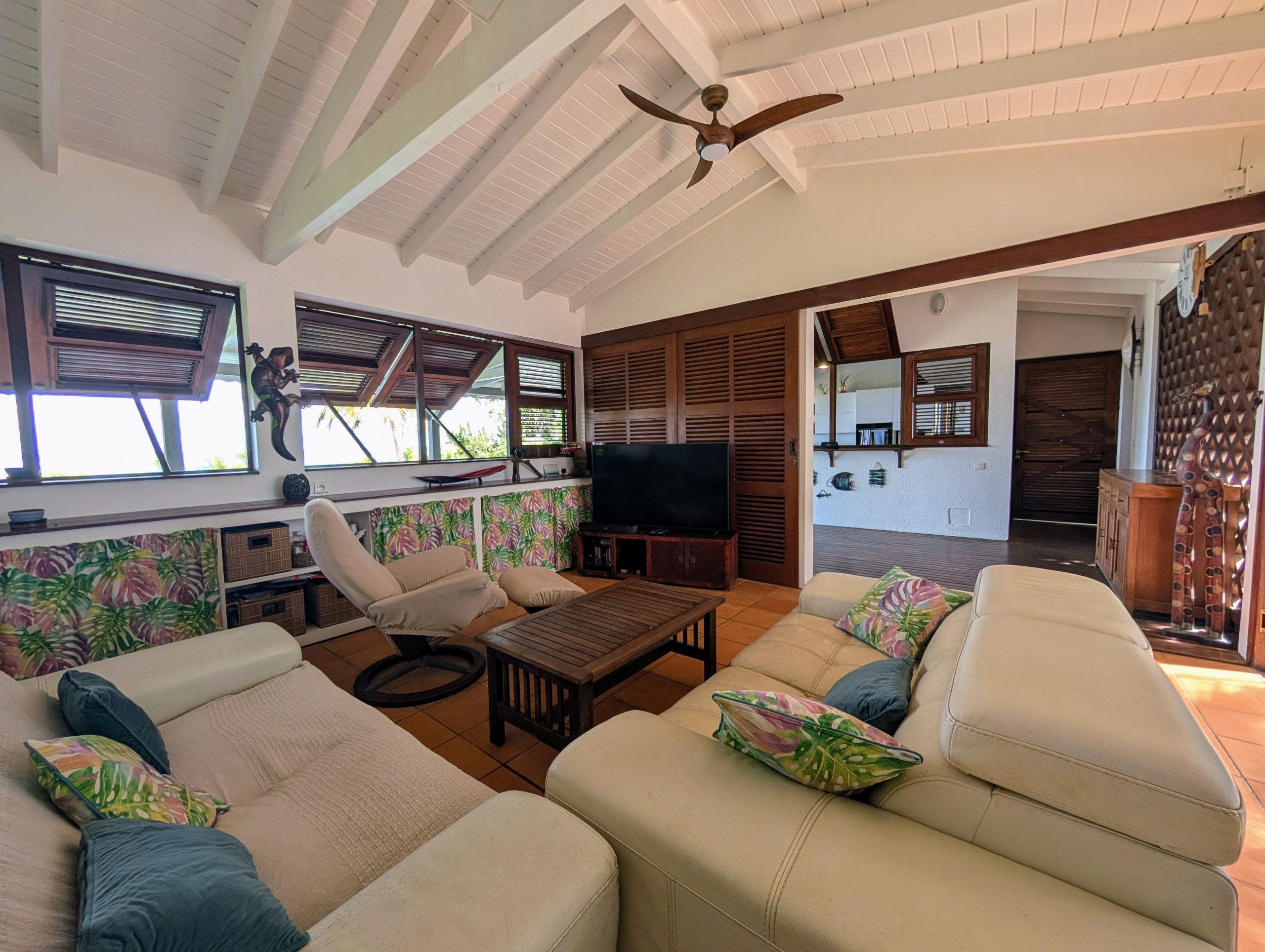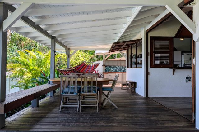 À l’extérieur, la piscine rénovée, le carbet et les différents espaces de détente créent une atmosphère de villa de standing, idéale pour recevoir et savourer la douceur de vivre des Antilles. Les équipements solaires et écologiques viennent compléter l’ensemble, apportant autonomie et valorisation durable du bien.