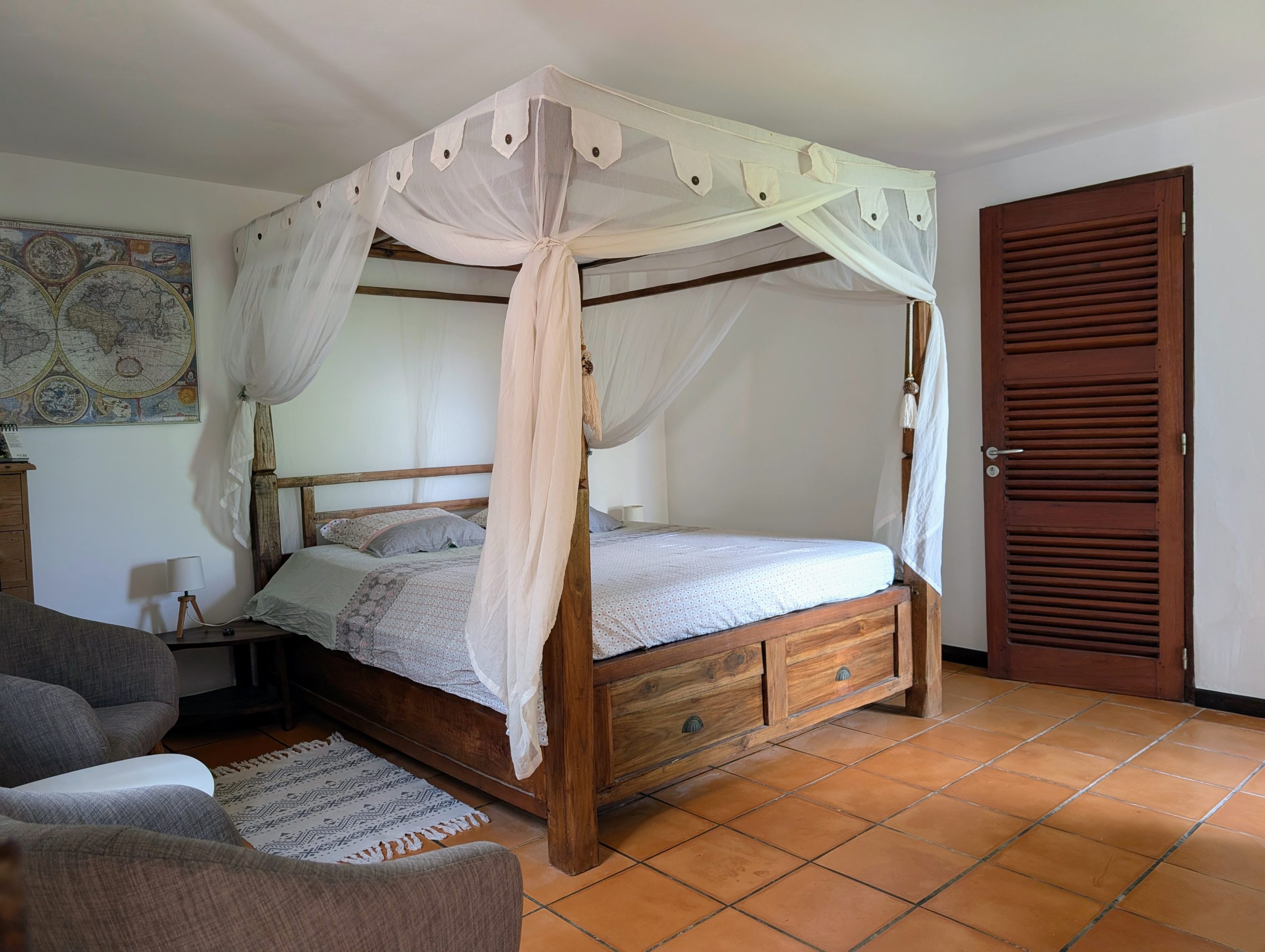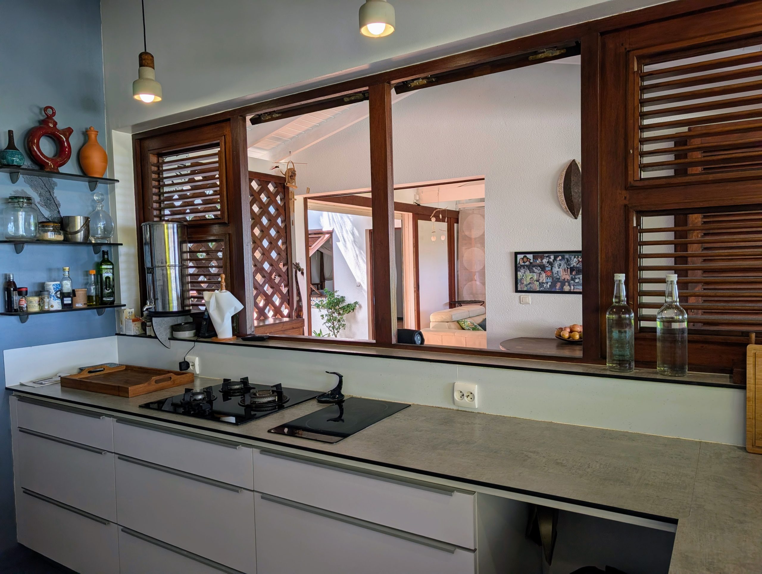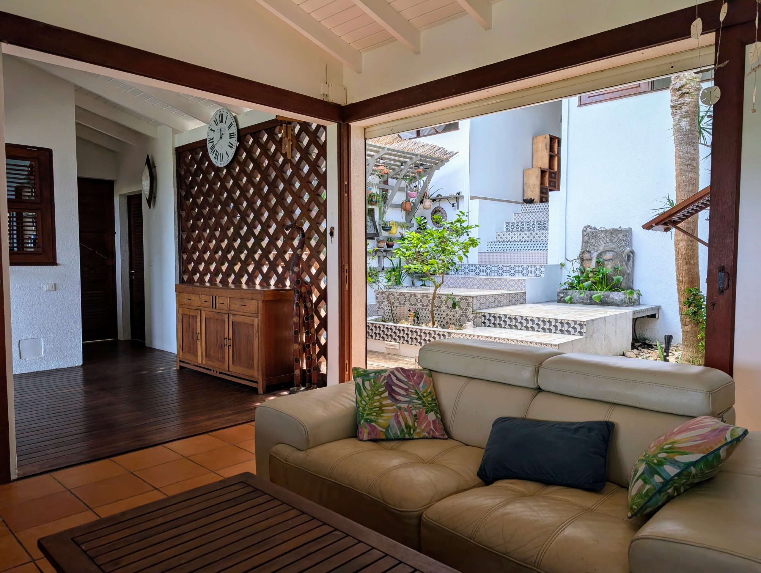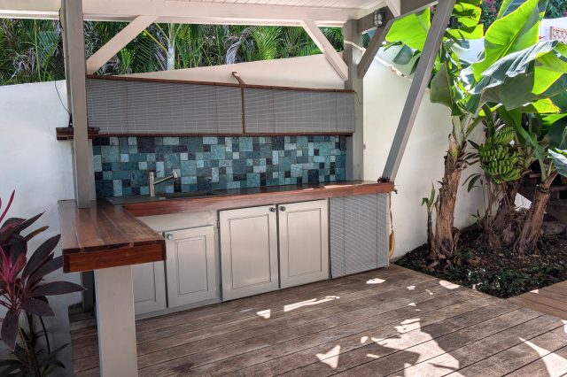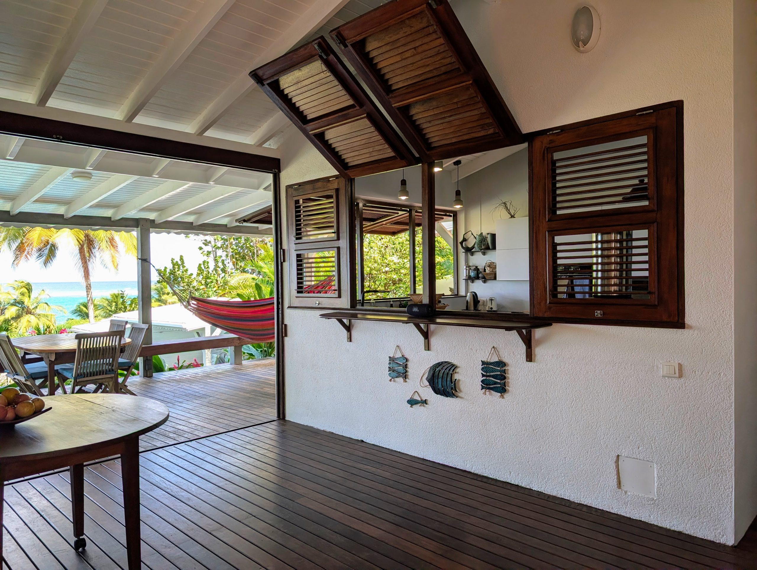 À l’extérieur, la piscine rénovée, le carbet et les différents espaces de détente créent une atmosphère de villa de standing, idéale pour recevoir et savourer la douceur de vivre des Antilles. Les équipements solaires et écologiques viennent compléter l’ensemble, apportant autonomie et valorisation durable du bien.