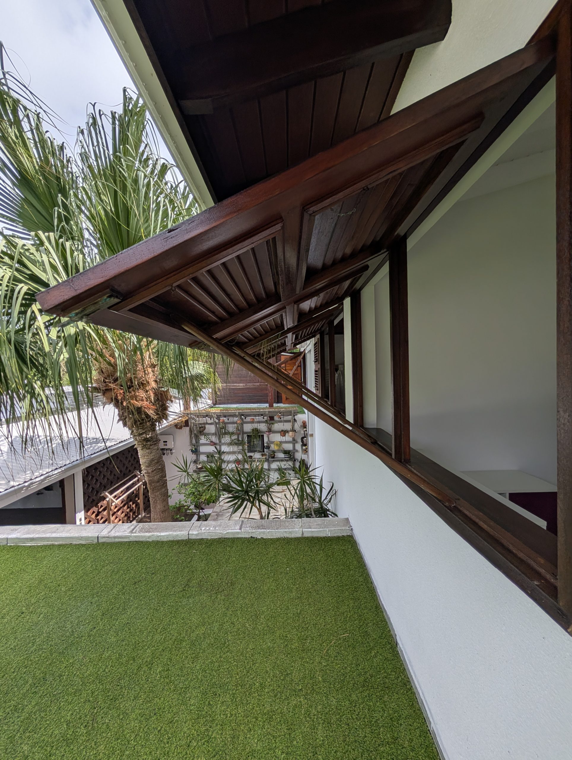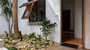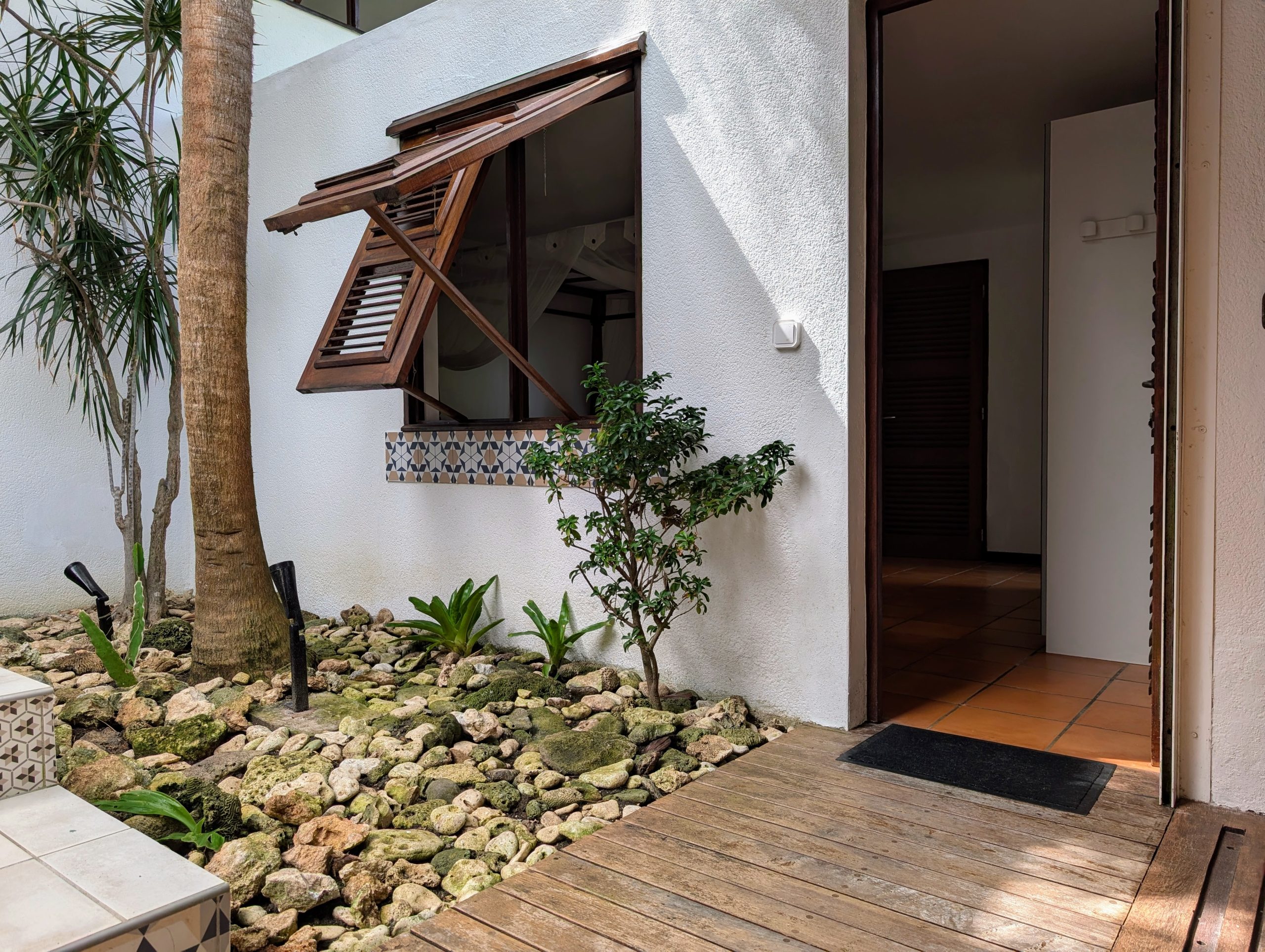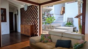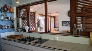Construite sur deux niveaux reliés par des escaliers, la maison séduit par son architecture originale et son caractère atypique. Elle dispose d’un patio intérieur qui apporte lumière et ventilation naturelle, tout en préservant l’intimité des espaces de vie.