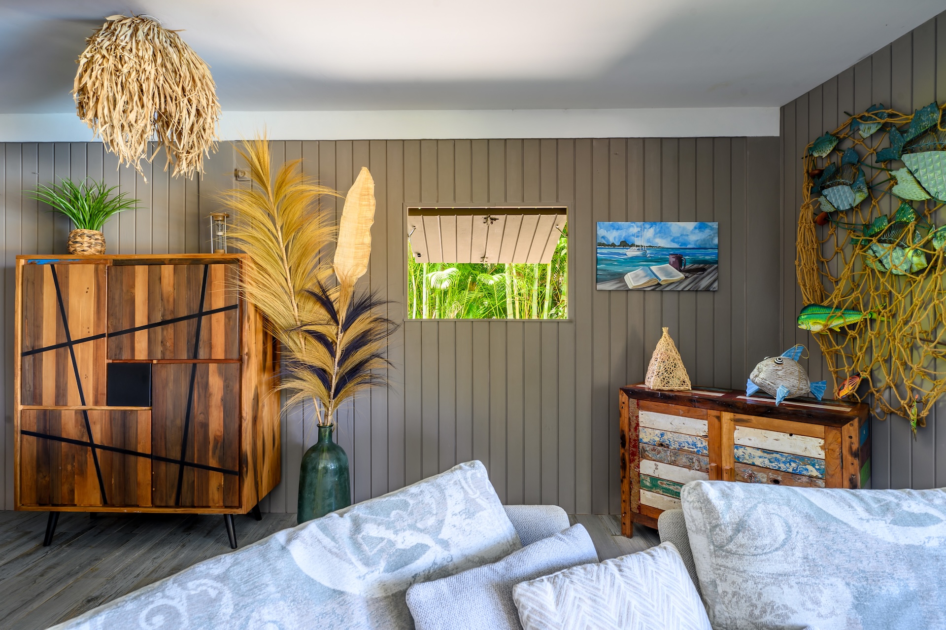 Dès l’entrée, le charme opère : un terrain paysager de 1 300 m², parfaitement entretenu, en harmonie avec la végétation tropicale environnante.